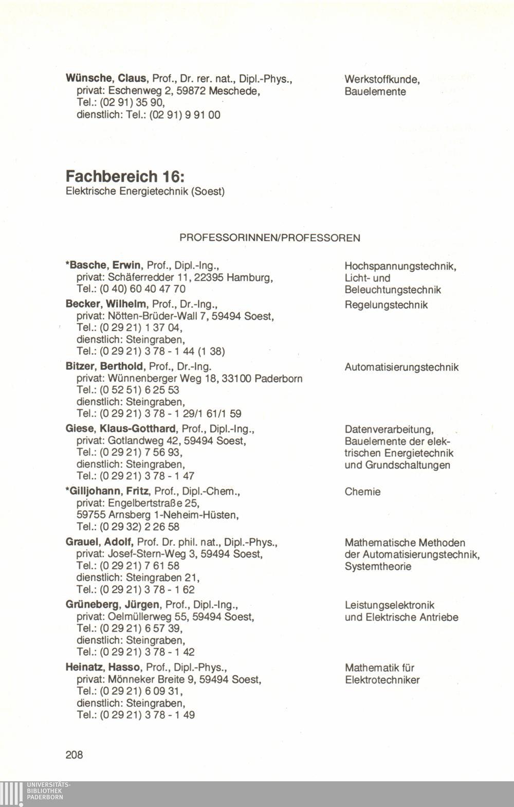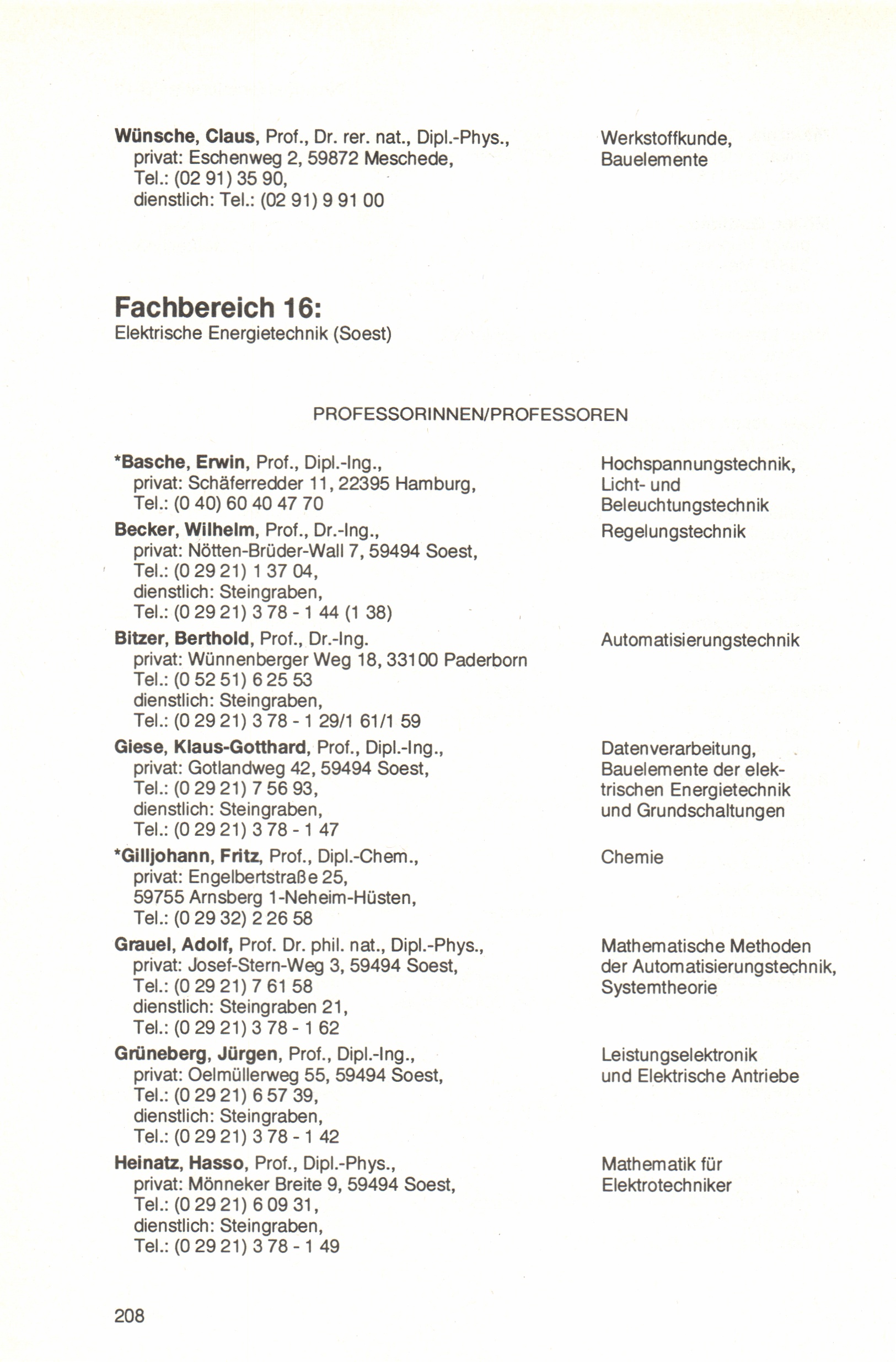 Fachbereich 16: Elektrische Energietechnik (Soest)