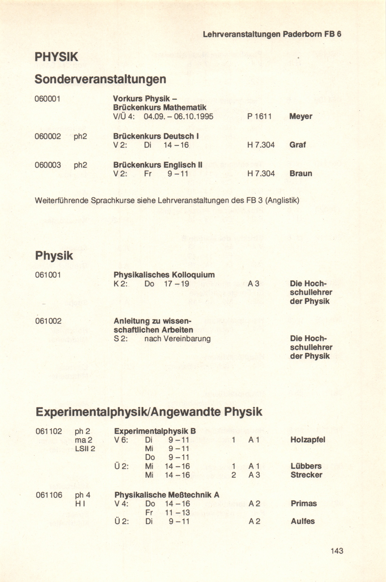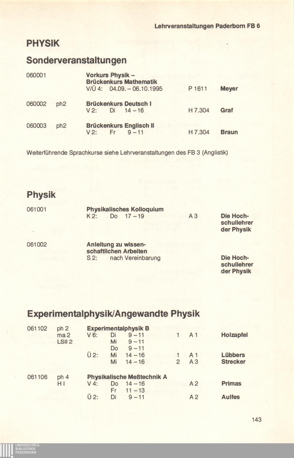 Personal- und Vorlesungsverzeichnis für die Universität Paderborn
