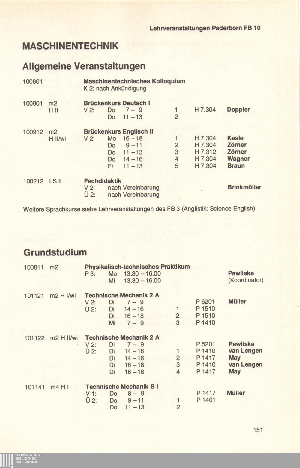 Personal- und Vorlesungsverzeichnis für die Universität Paderborn