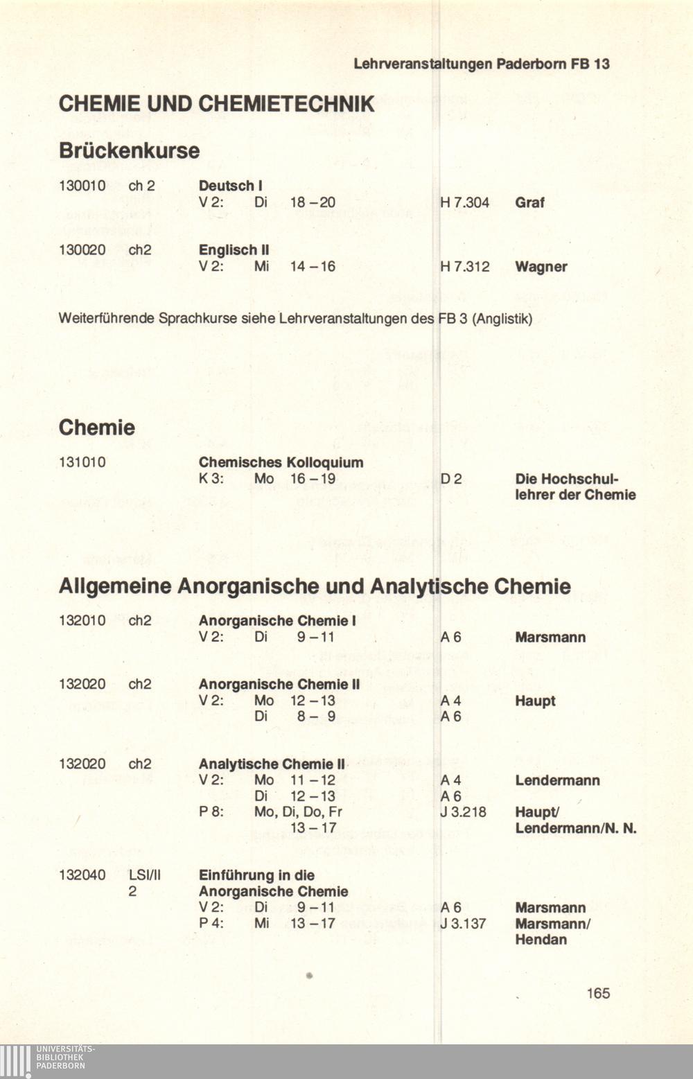 Personal- und Vorlesungsverzeichnis für die Universität Paderborn