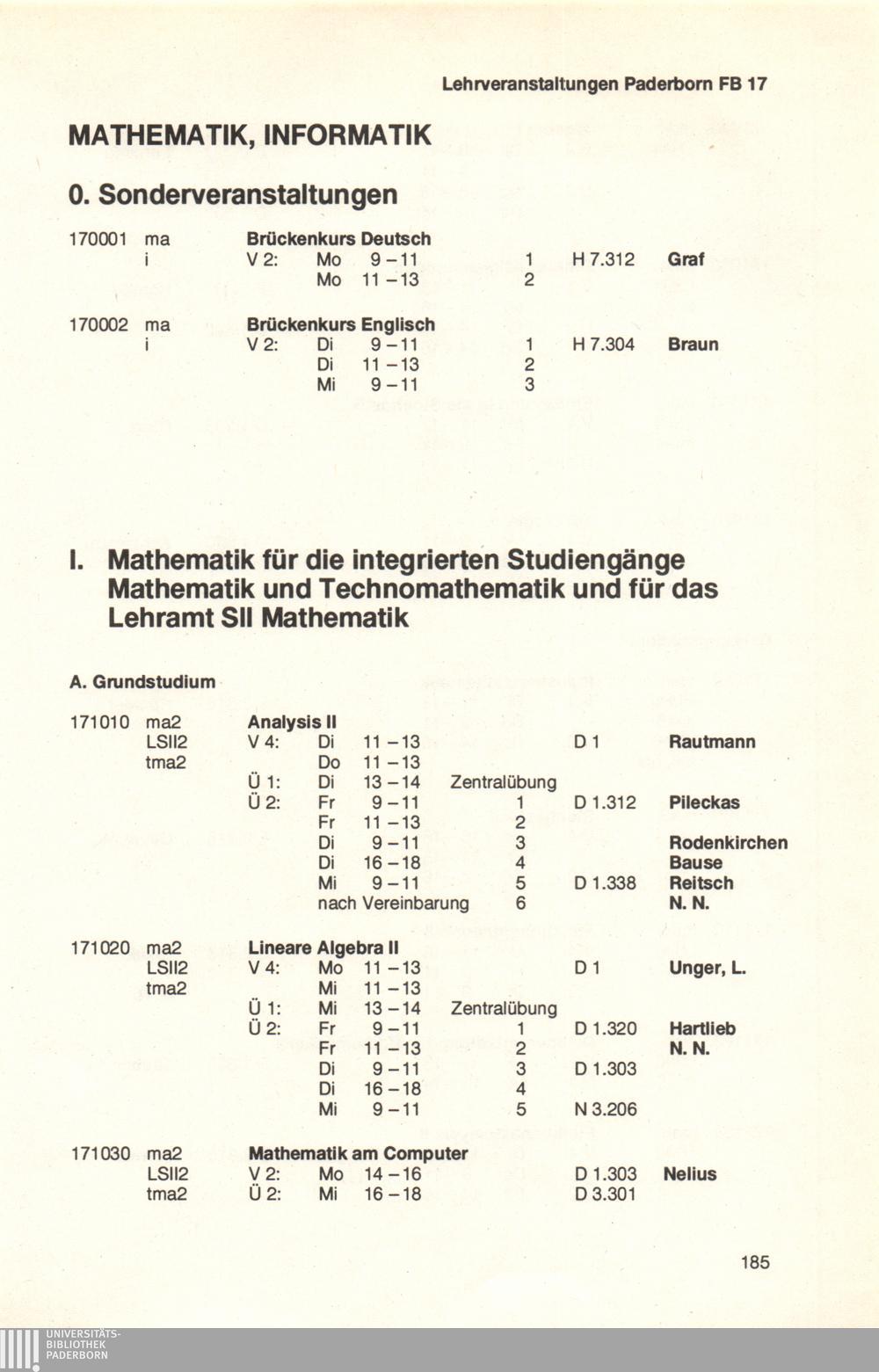 Personal- und Vorlesungsverzeichnis für die Universität Paderborn