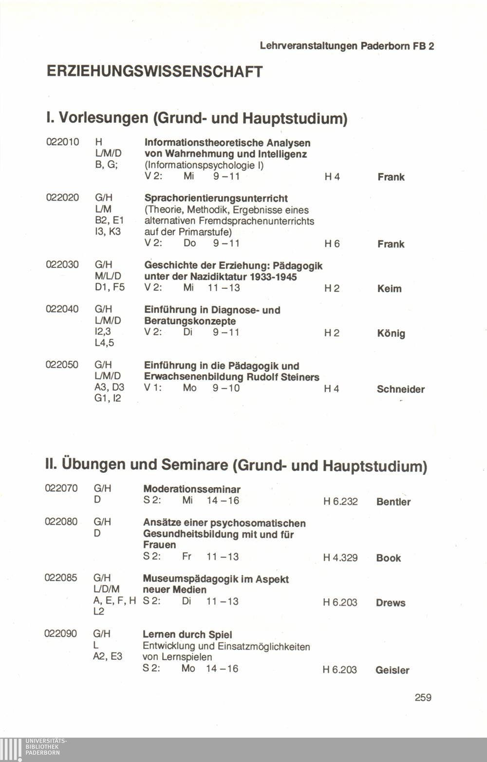 Personal- und Vorlesungsverzeichnis für die Universität Paderborn