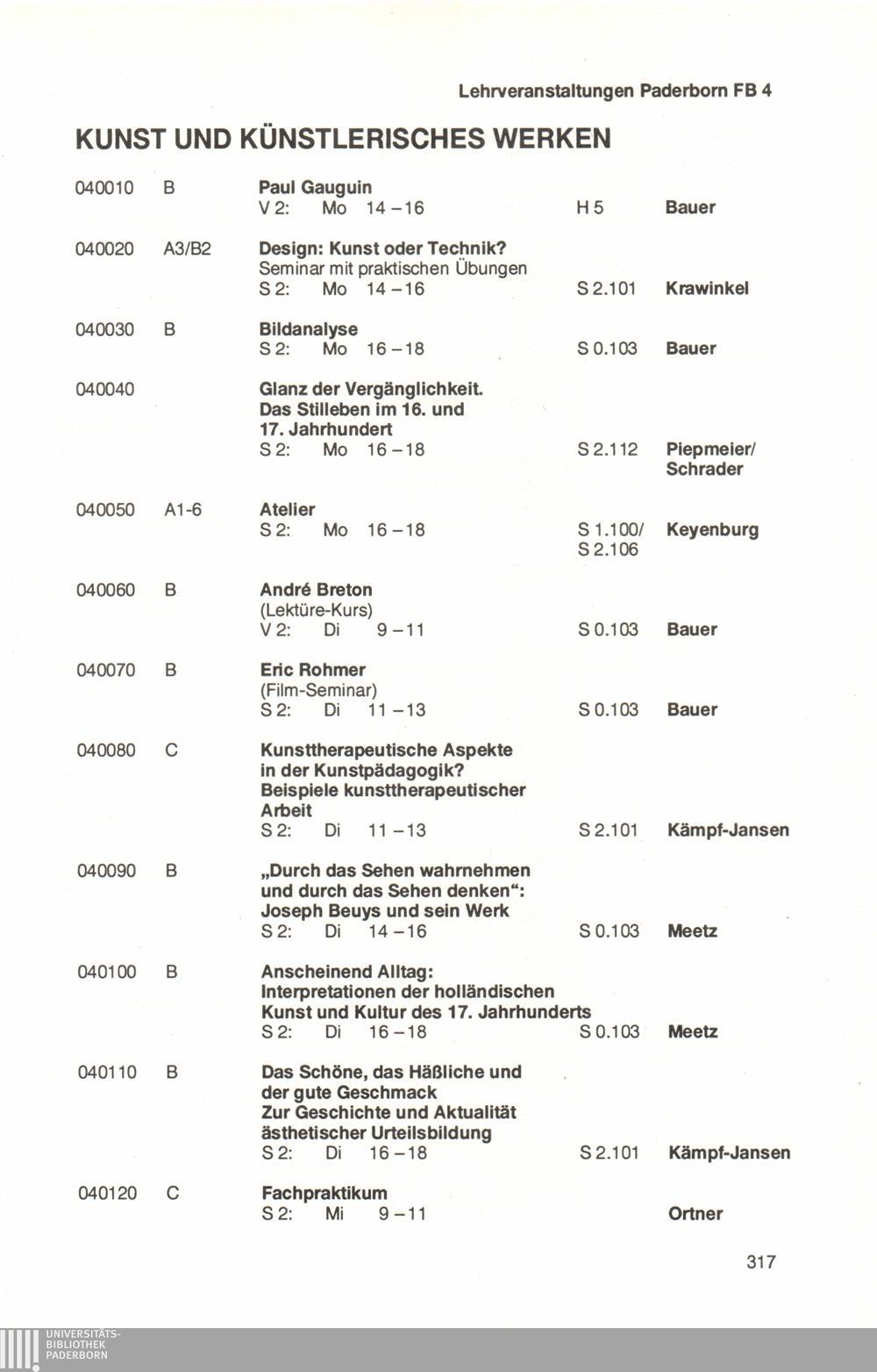 Personal- und Vorlesungsverzeichnis für die Universität Paderborn