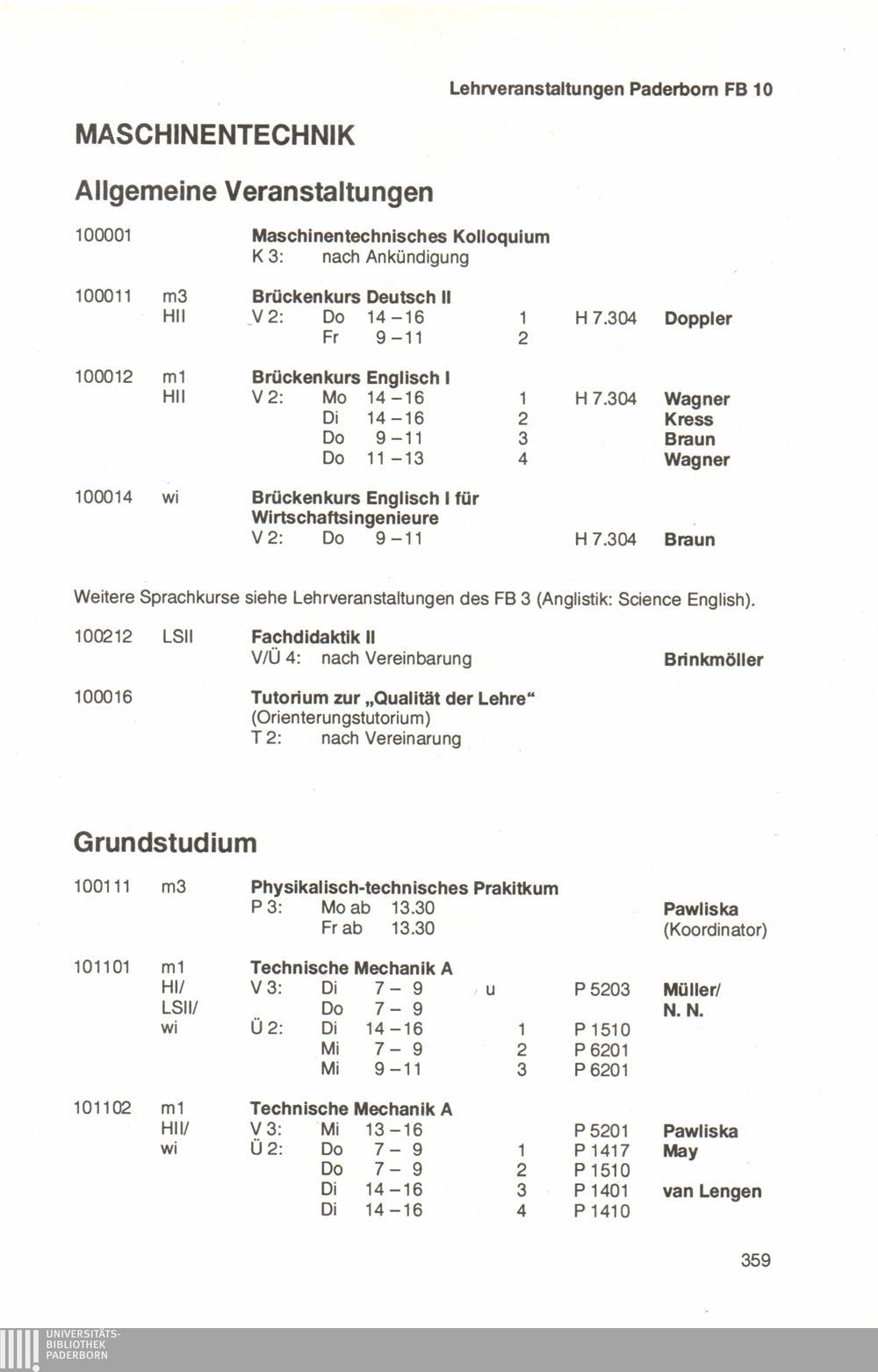 Personal- und Vorlesungsverzeichnis für die Universität Paderborn