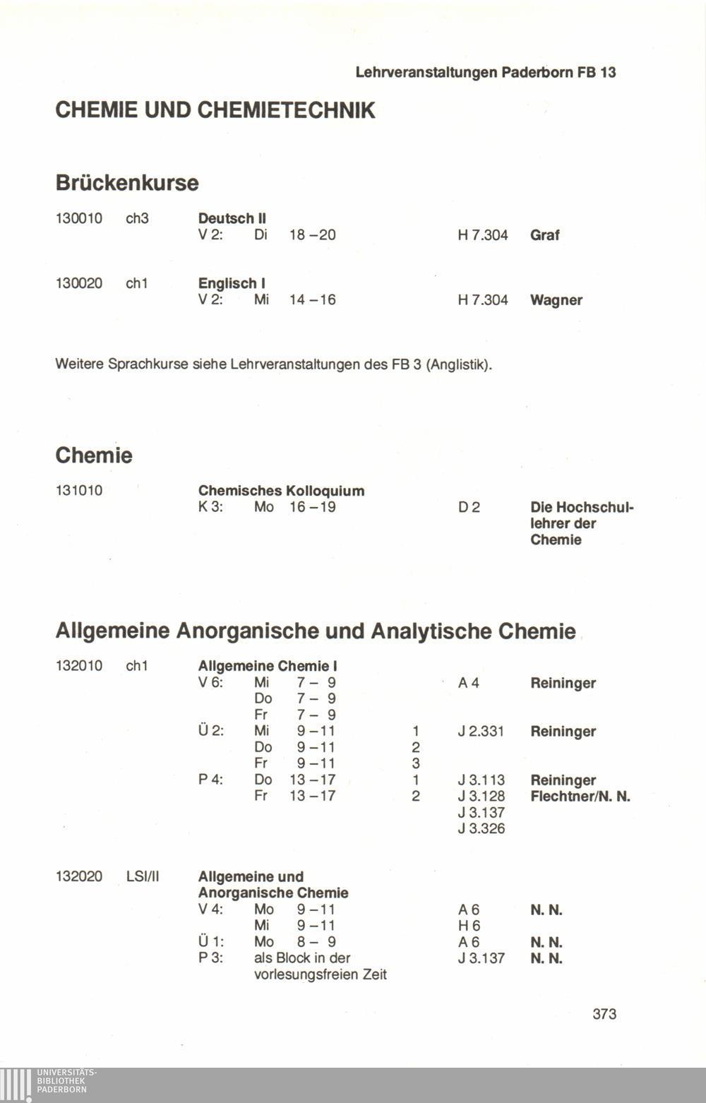 Personal- und Vorlesungsverzeichnis für die Universität Paderborn