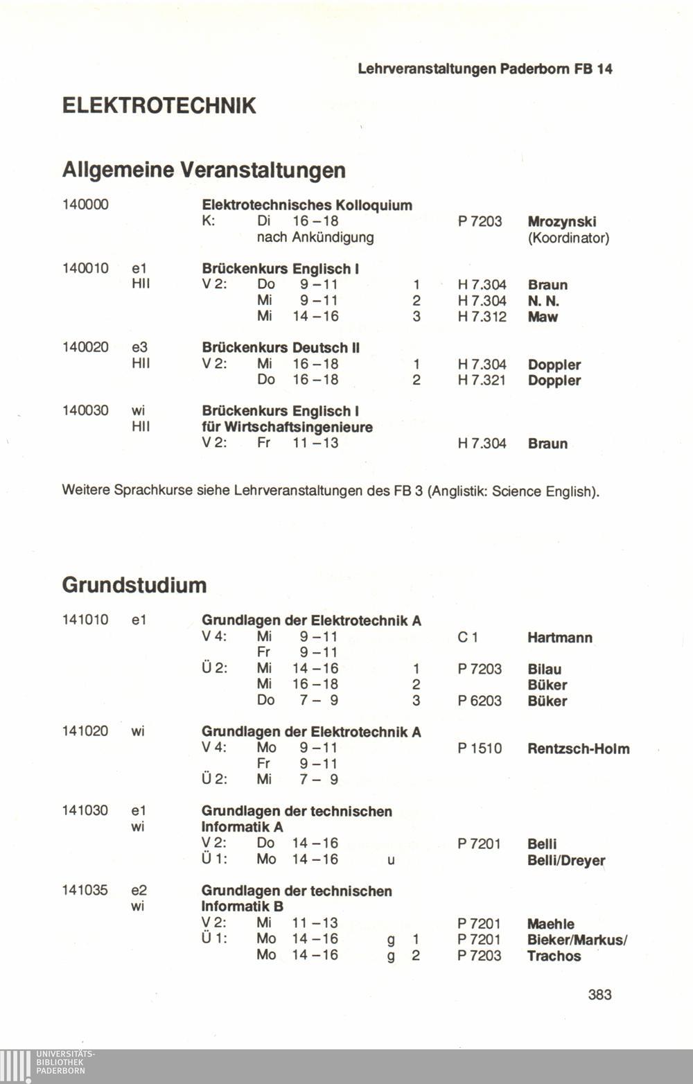 Personal- und Vorlesungsverzeichnis für die Universität Paderborn