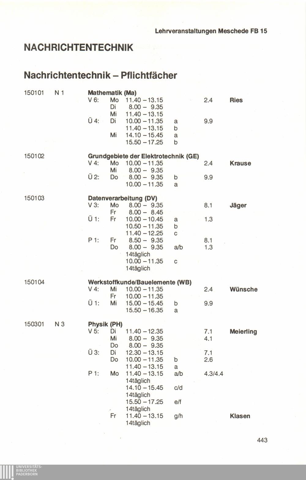 Personal- und Vorlesungsverzeichnis für die Universität Paderborn