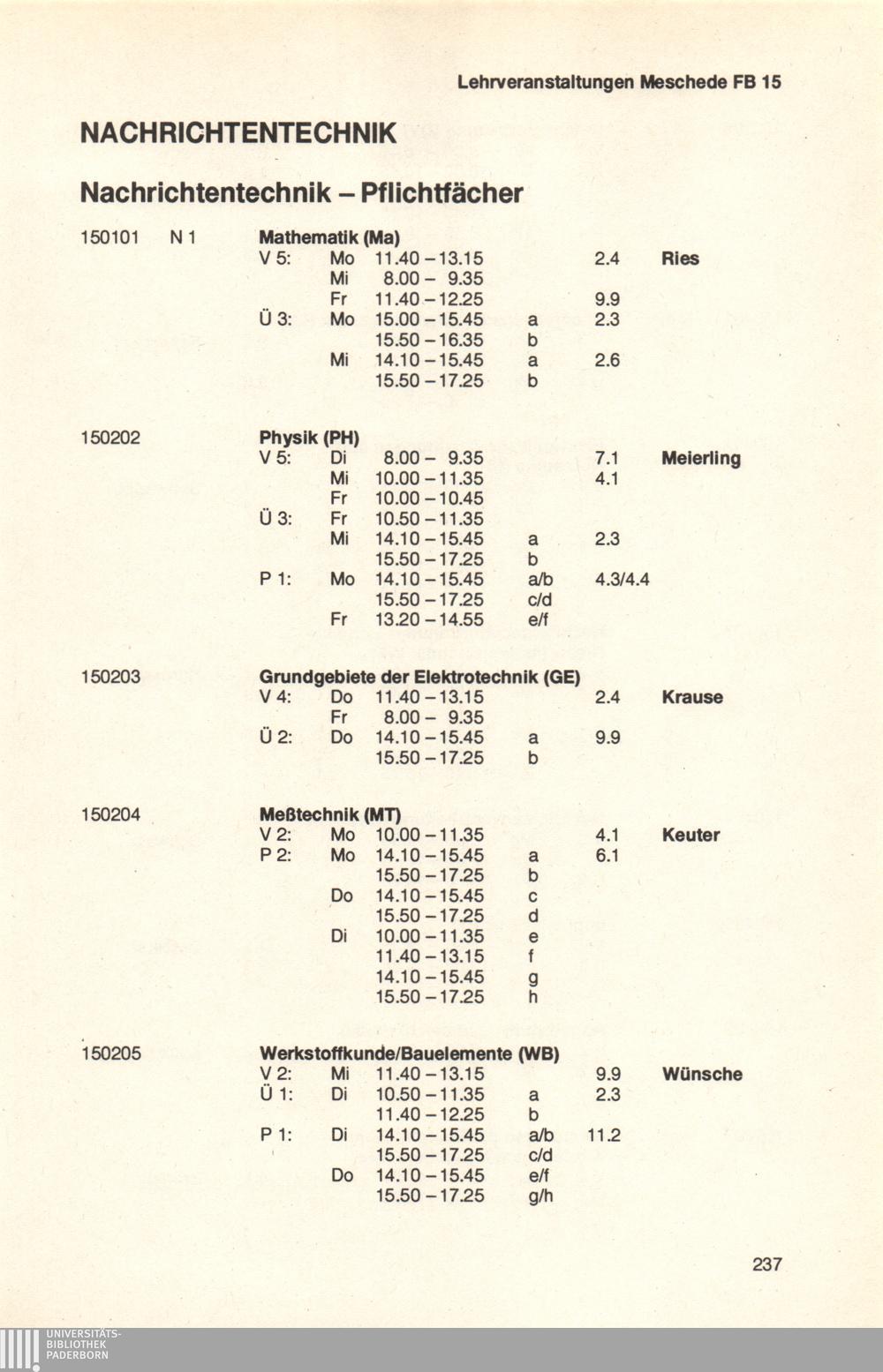 Personal- und Vorlesungsverzeichnis für die Universität Paderborn