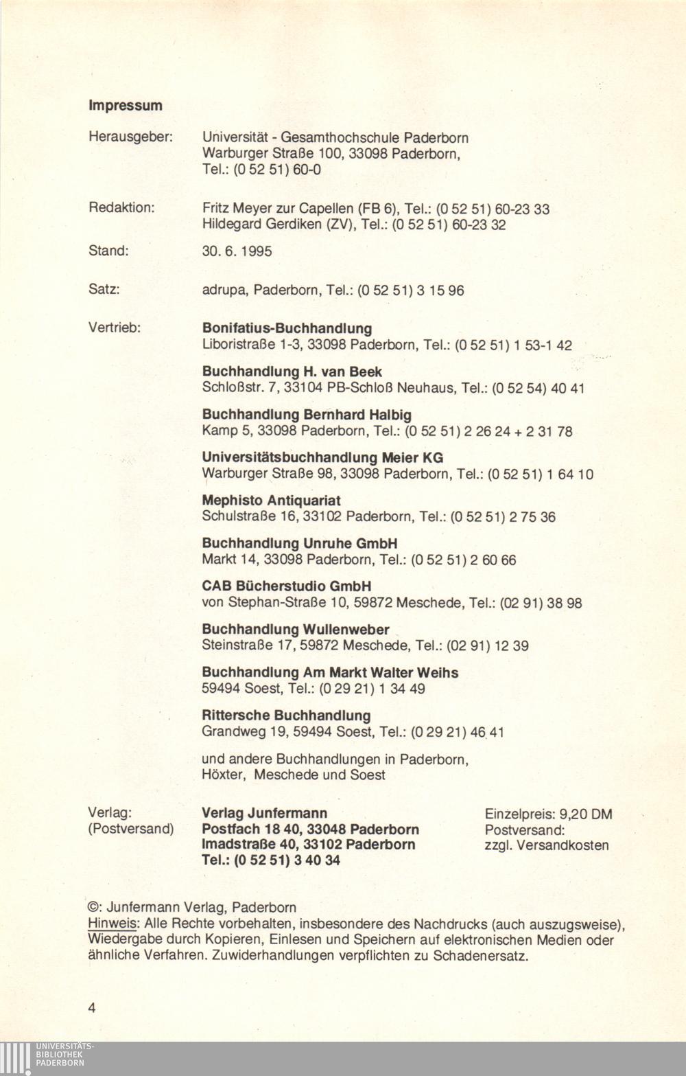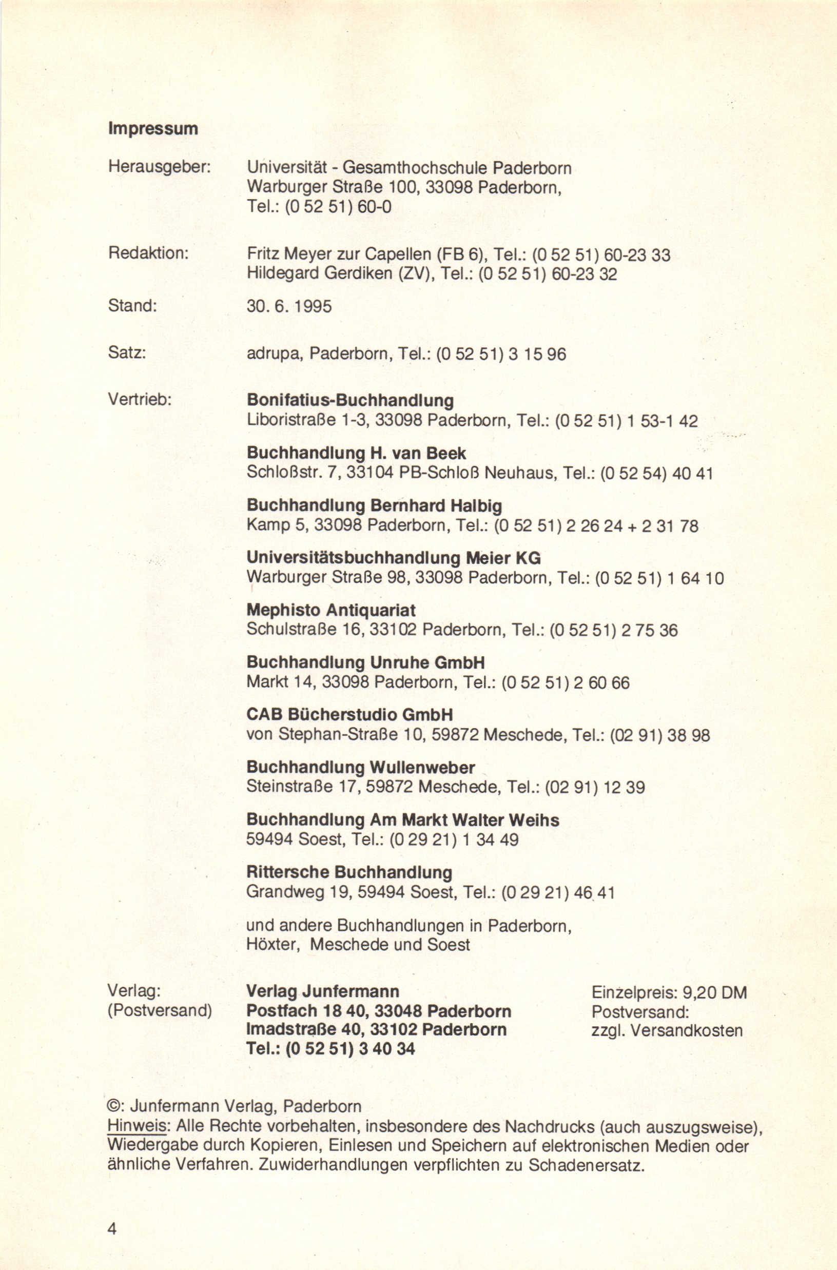 Personal- und Vorlesungsverzeichnis für die Universität Paderborn