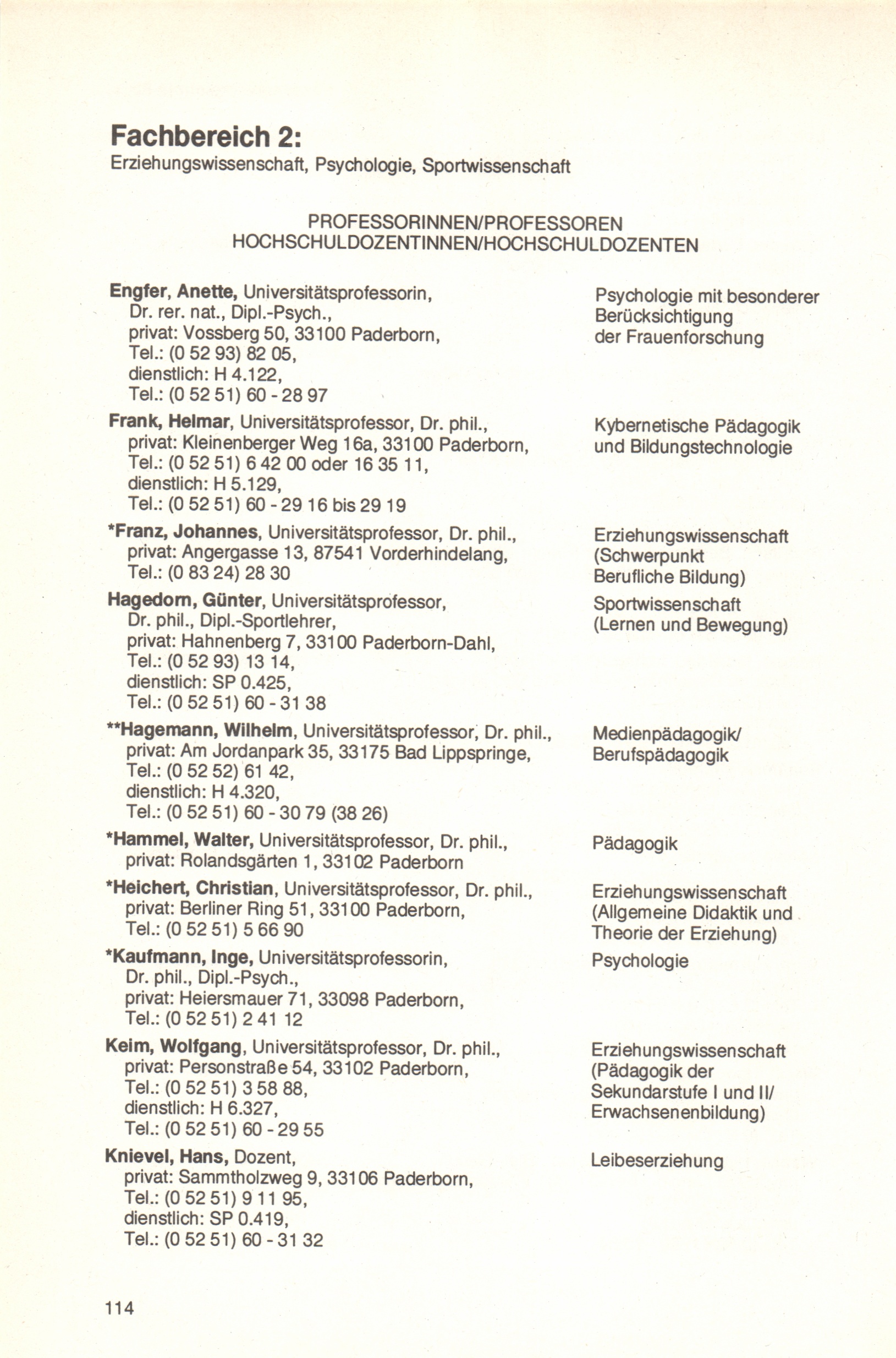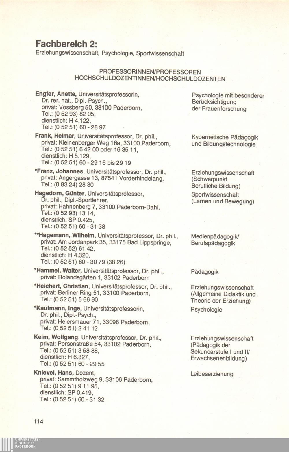 Personal- und Vorlesungsverzeichnis für die Universität Paderborn