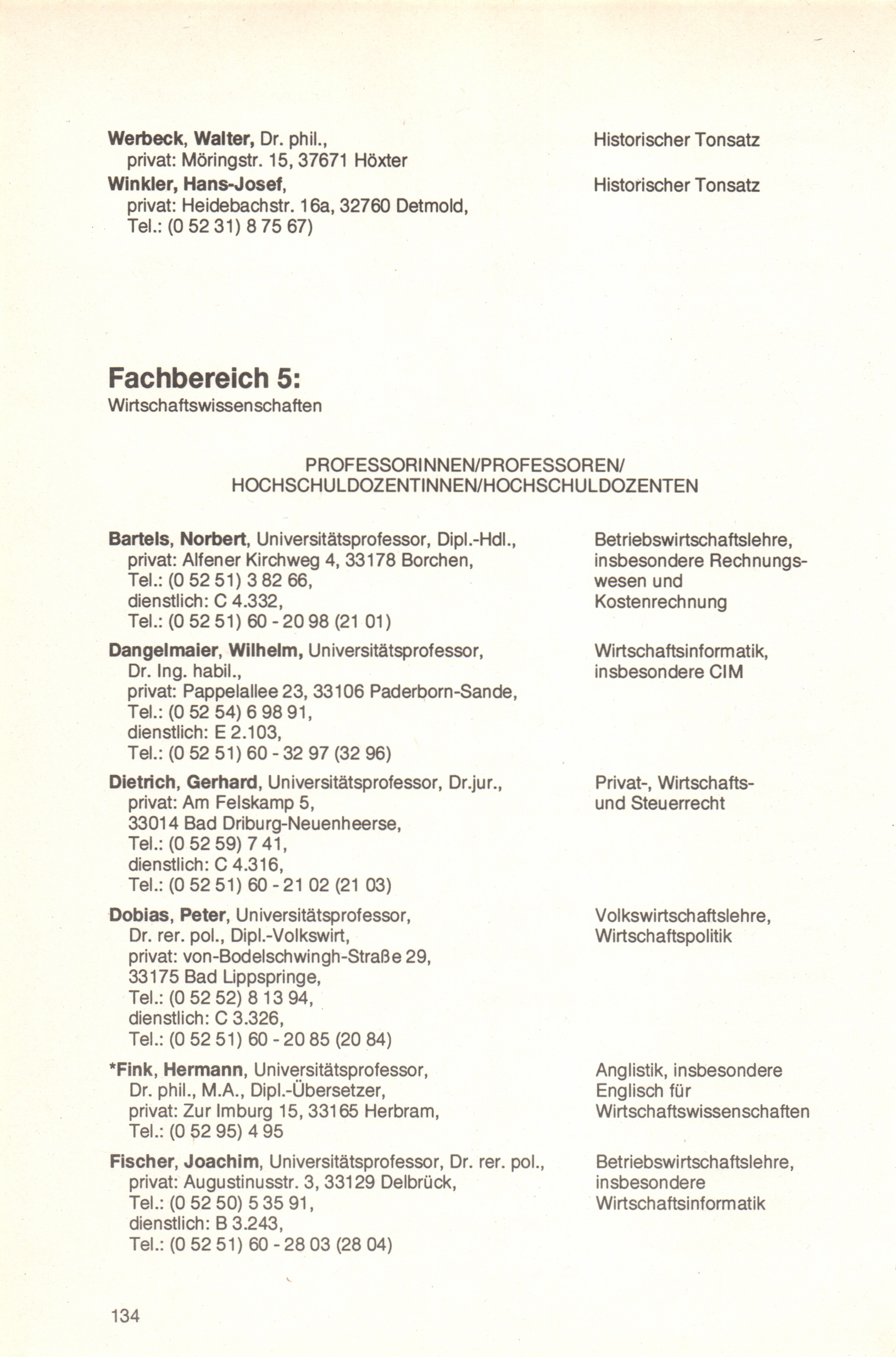 Personal- und Vorlesungsverzeichnis für die Universität Paderborn
