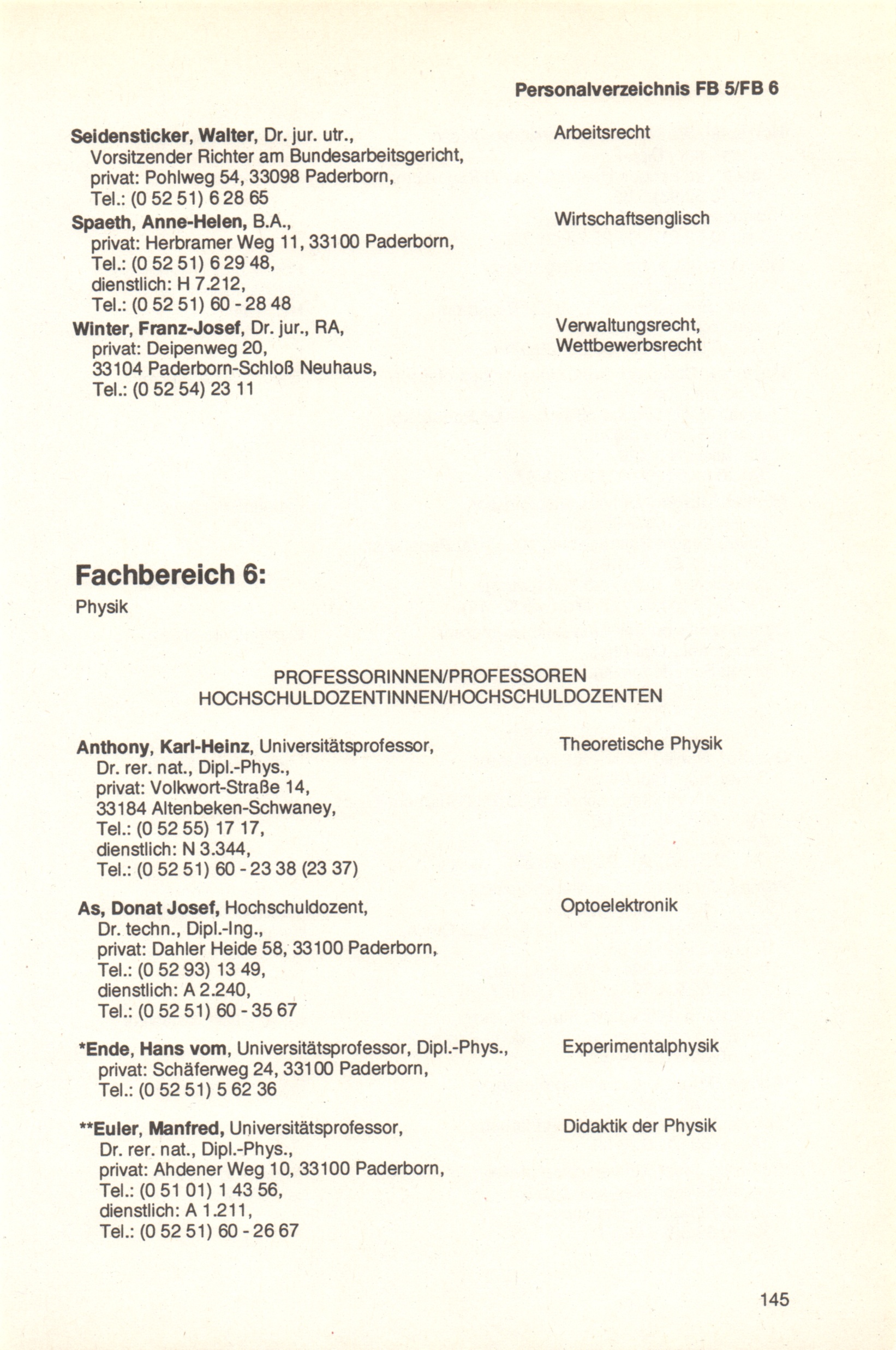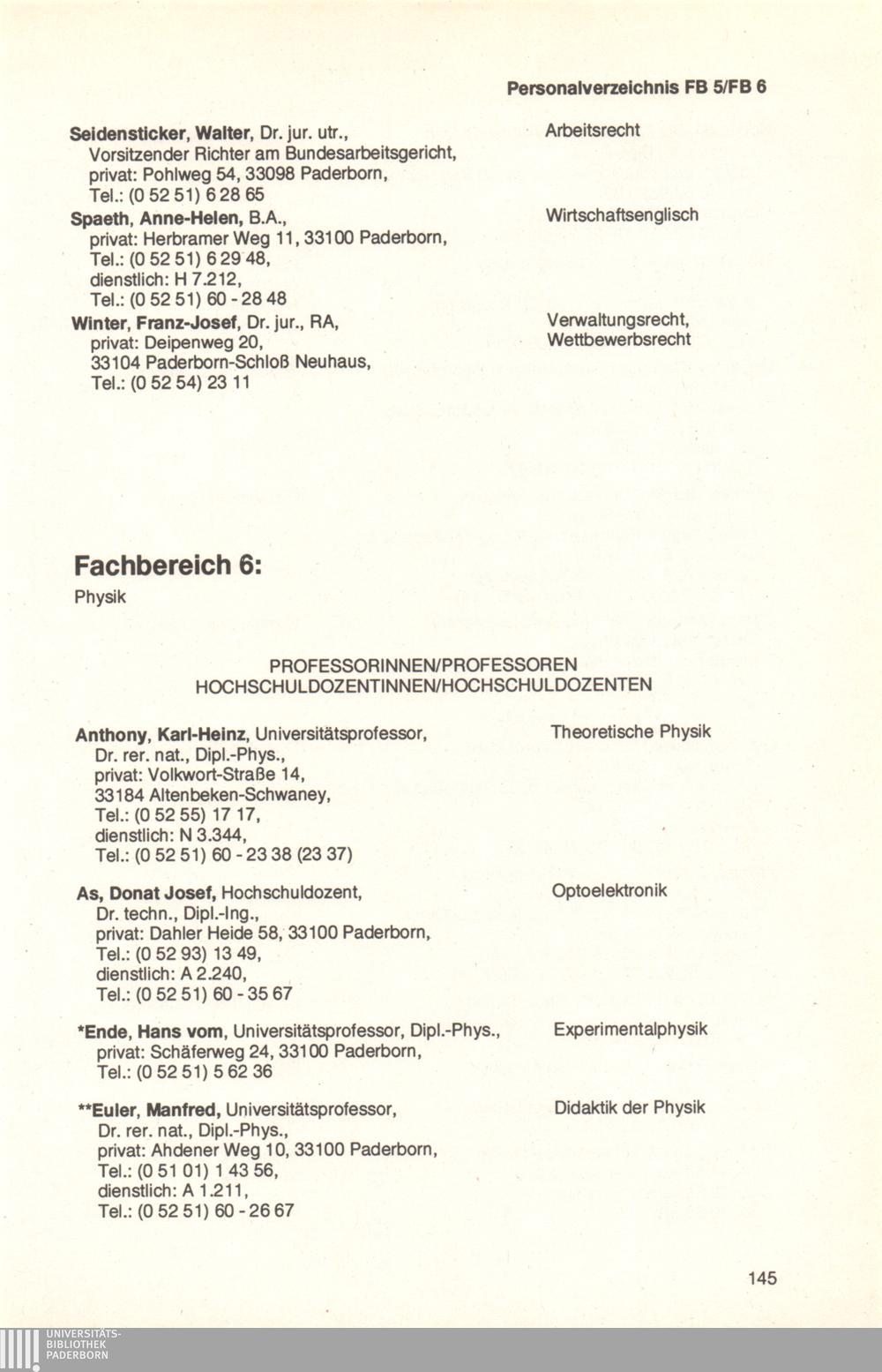 Personal- und Vorlesungsverzeichnis für die Universität Paderborn