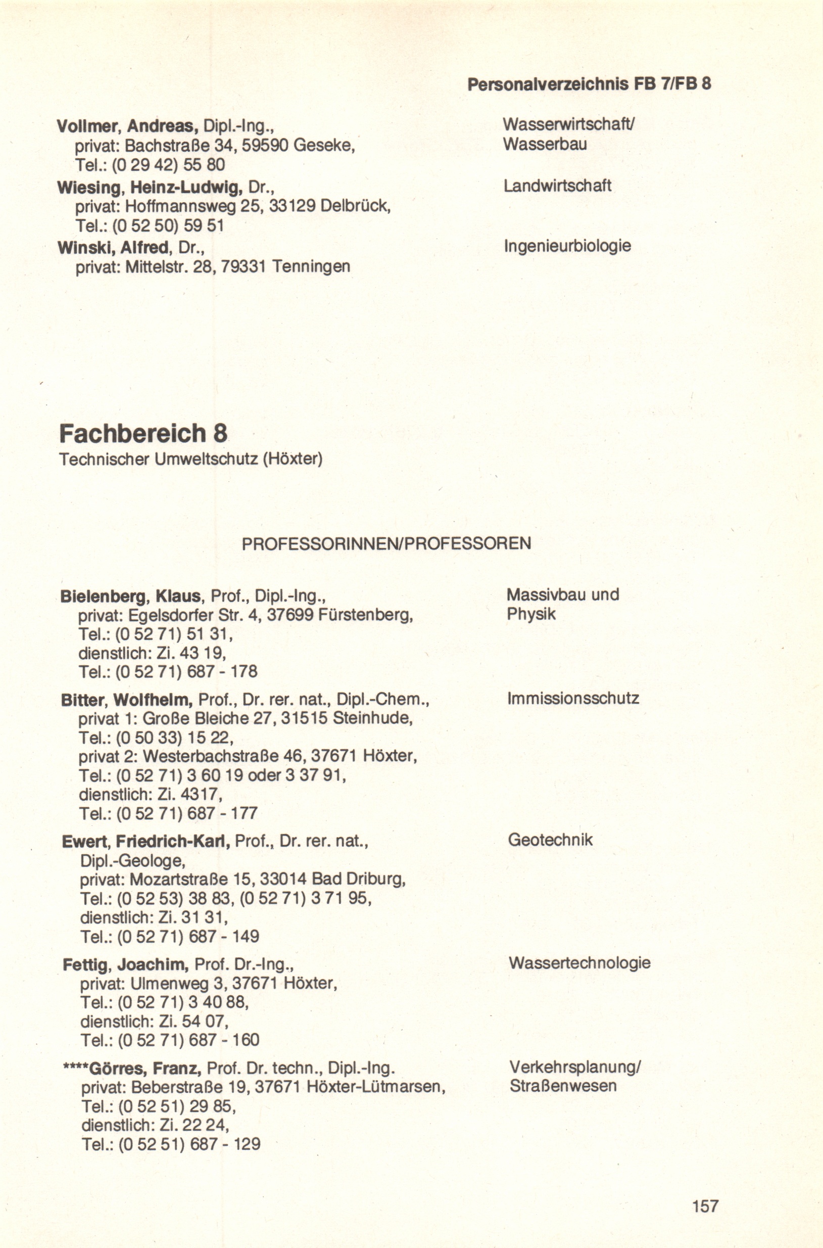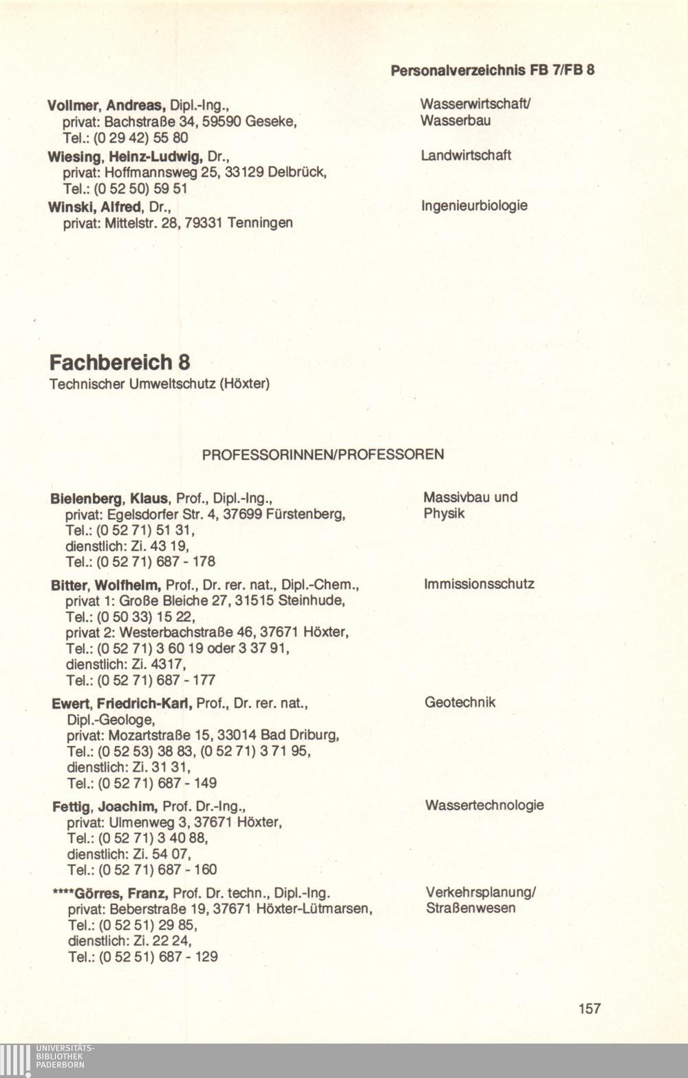 Fachbereich 8: Technischer Umweltschutz (Höxter)