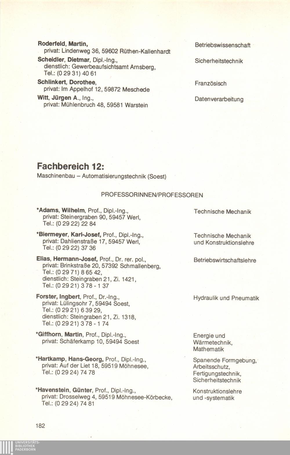 Personal- und Vorlesungsverzeichnis für die Universität Paderborn
