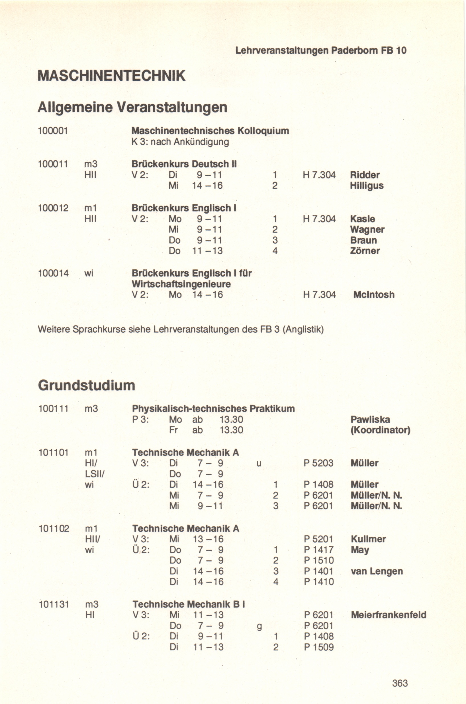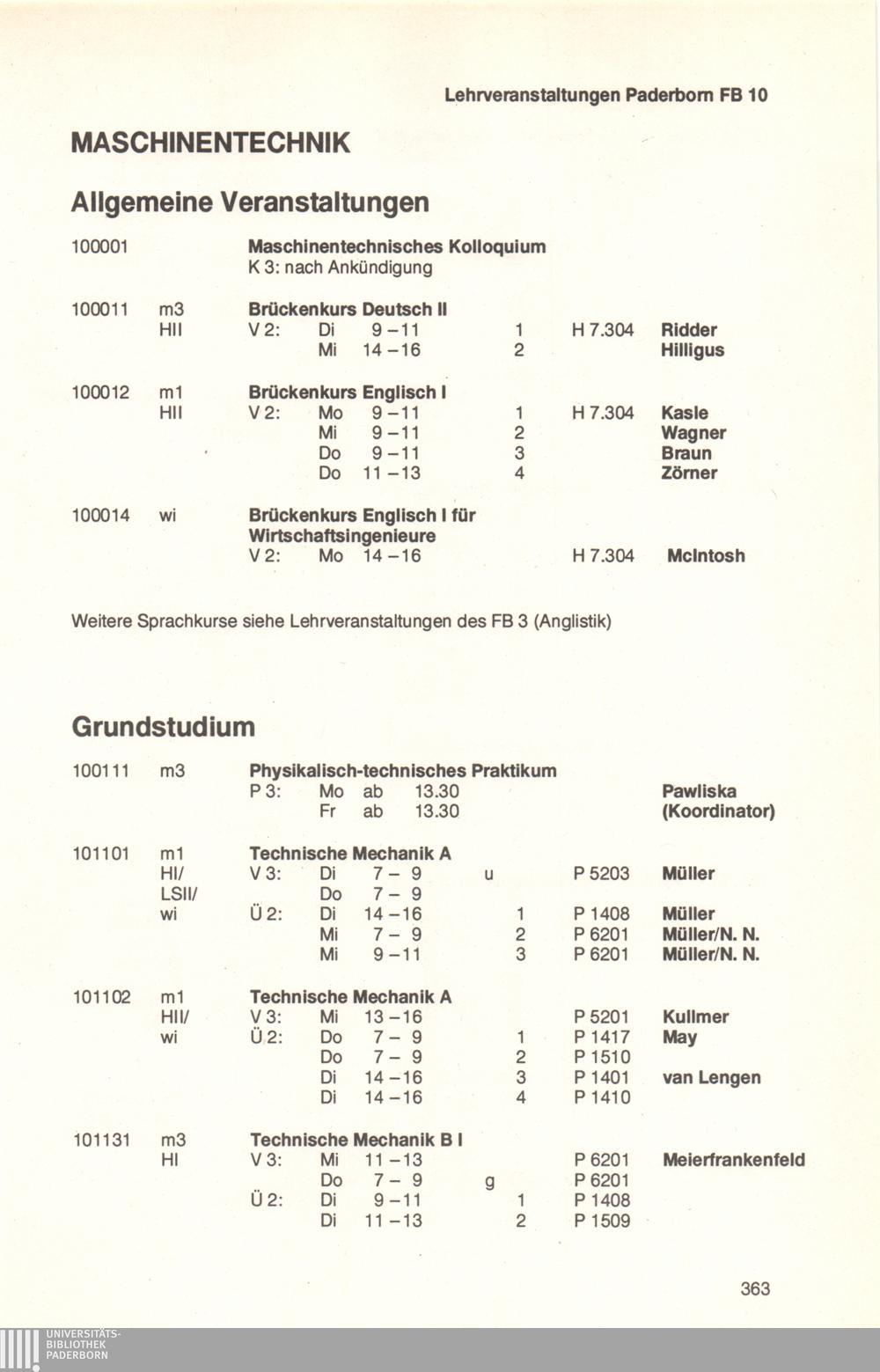 Personal- und Vorlesungsverzeichnis für die Universität Paderborn