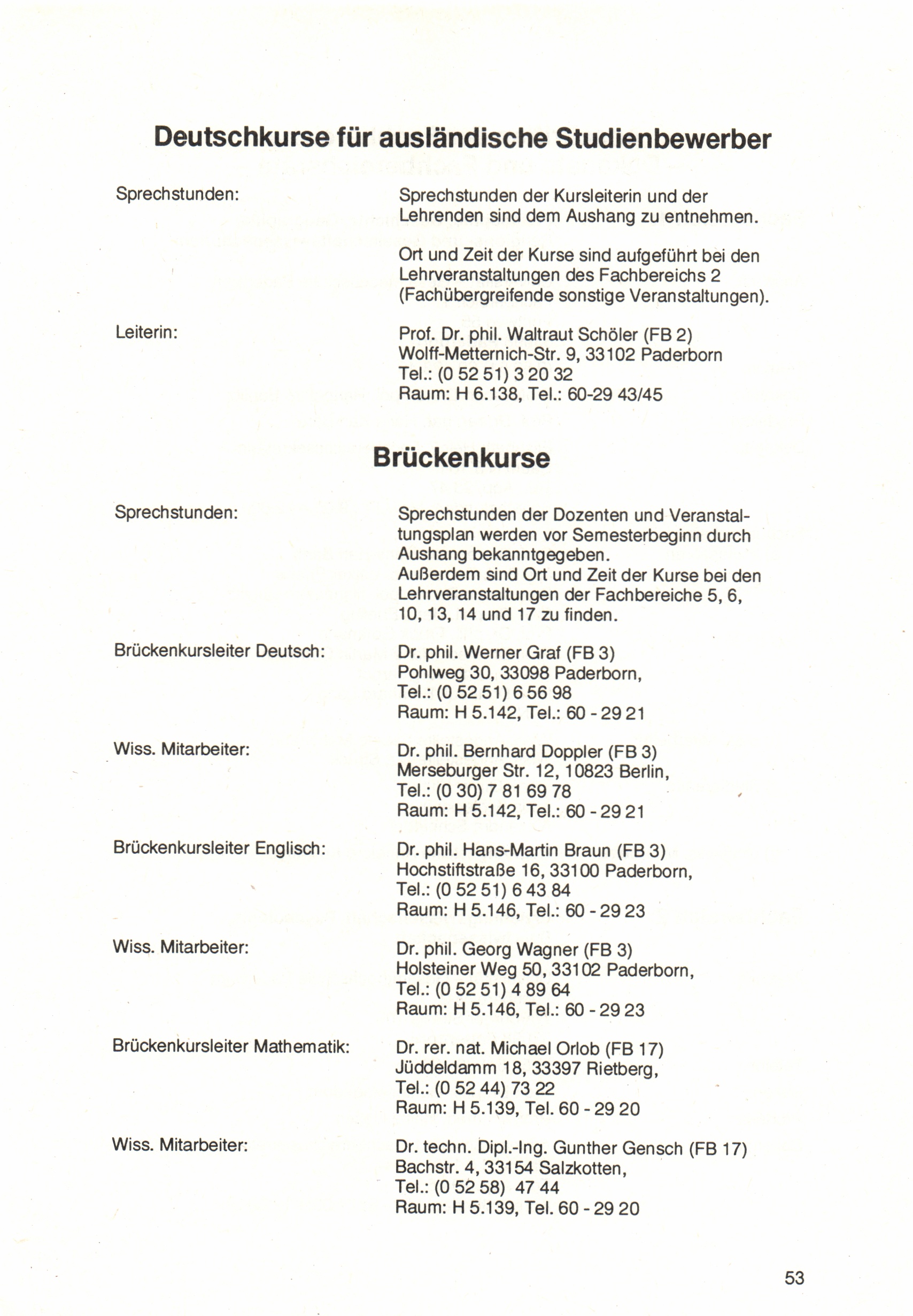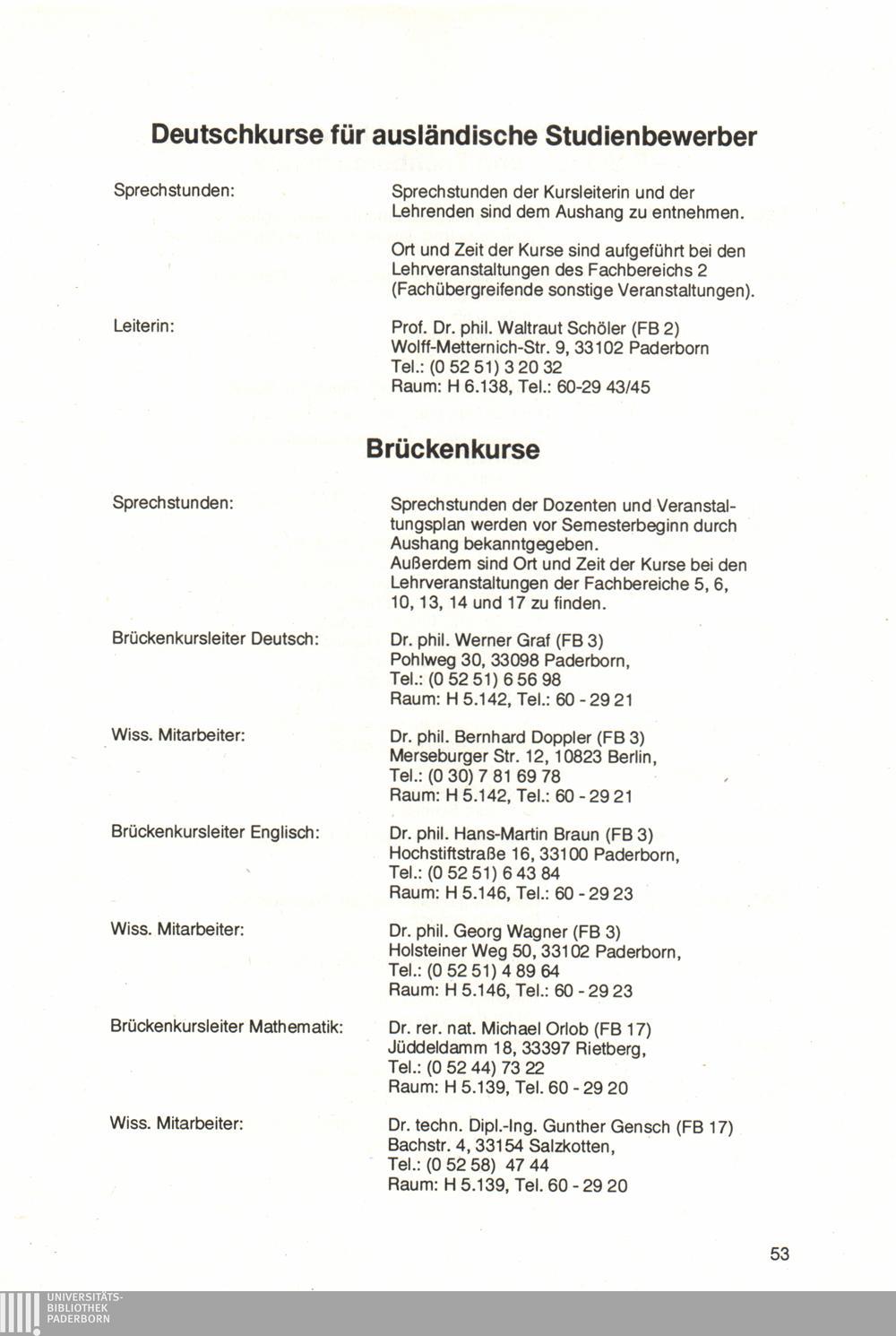 Personal- und Vorlesungsverzeichnis für die Universität Paderborn