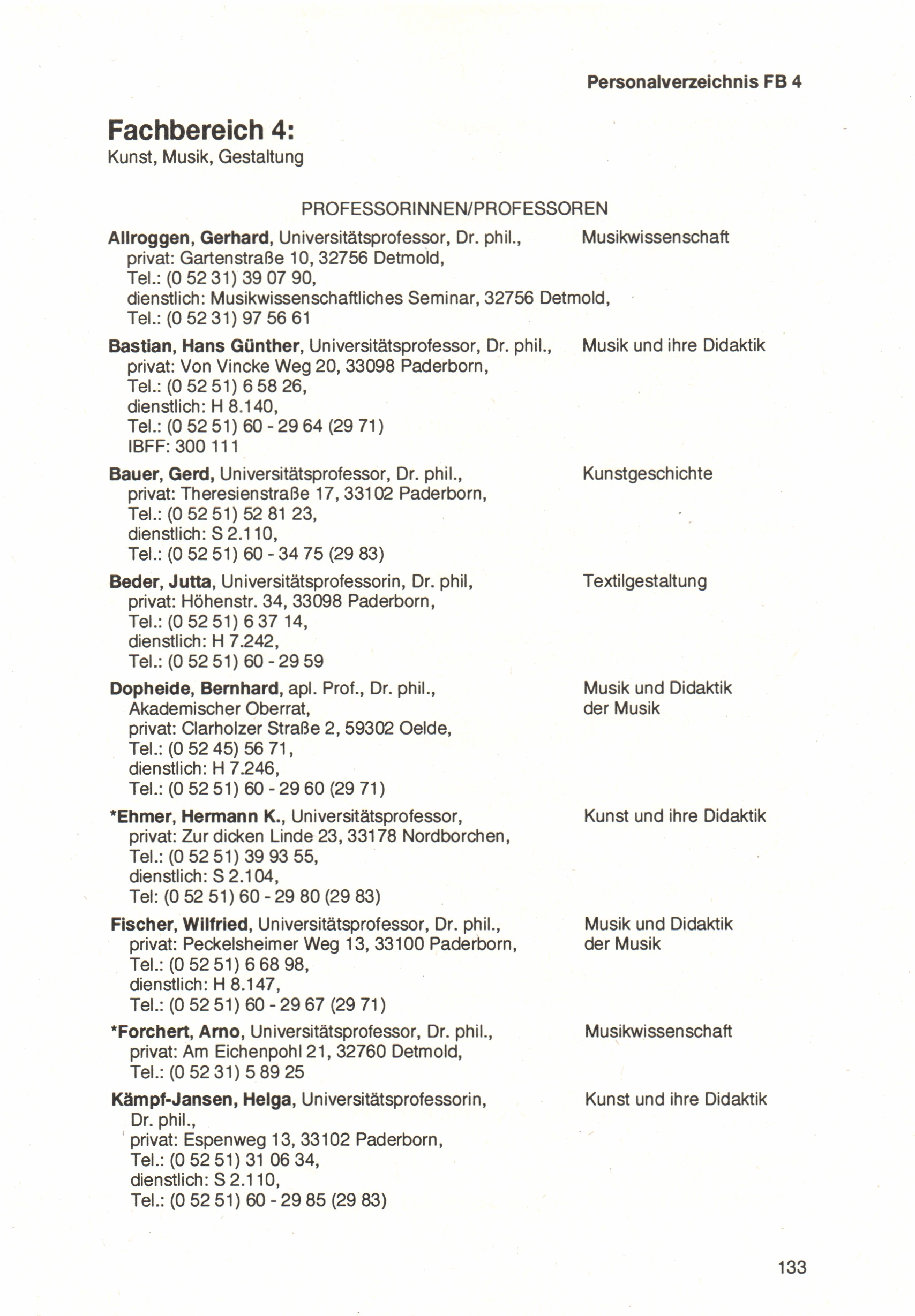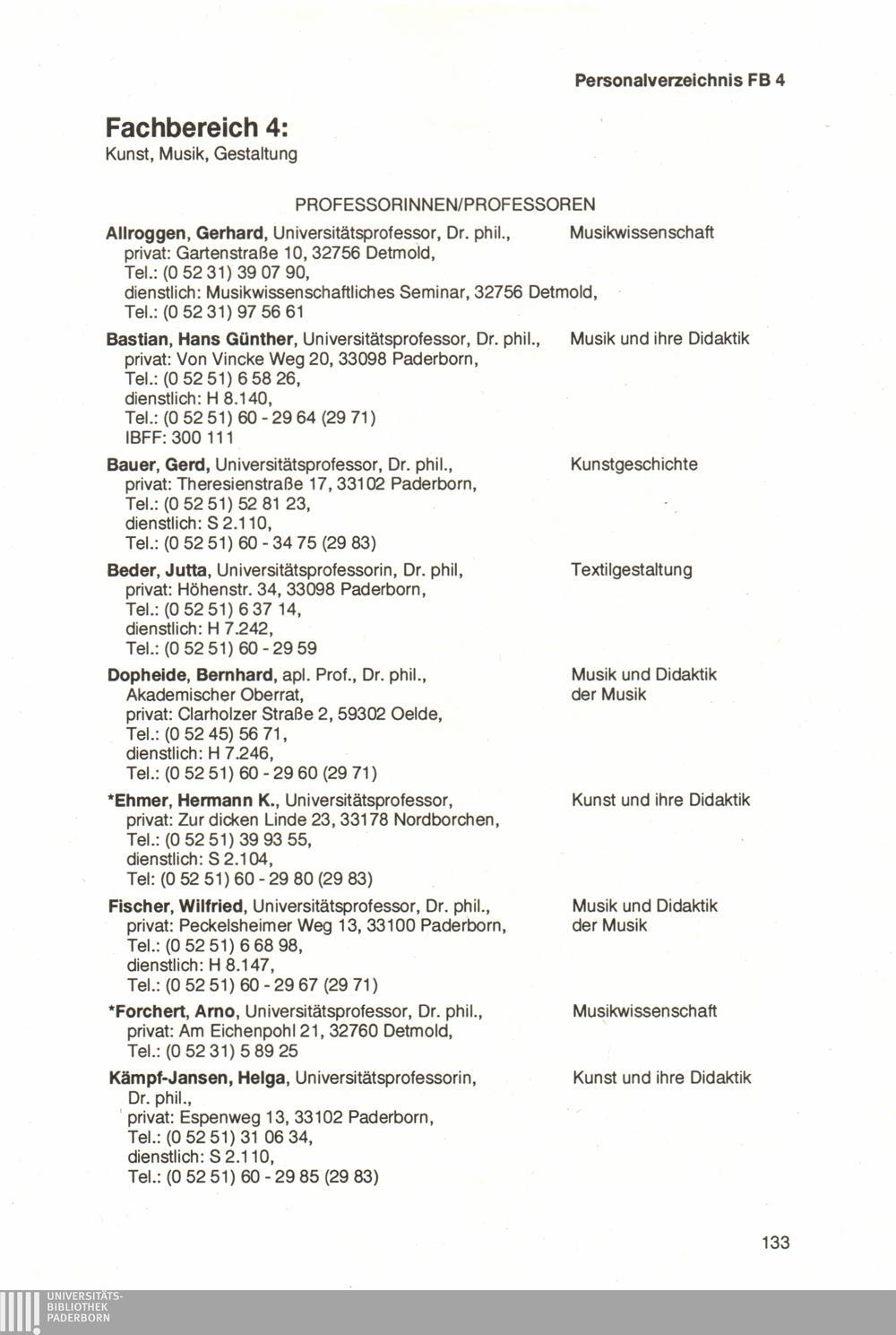 Personal- und Vorlesungsverzeichnis für die Universität Paderborn