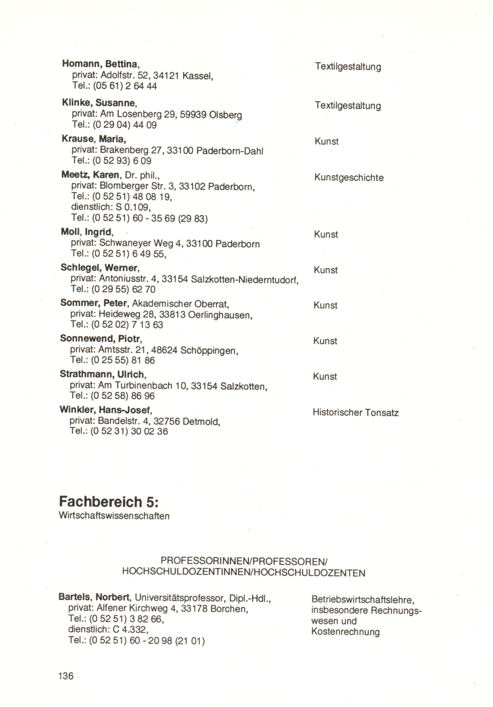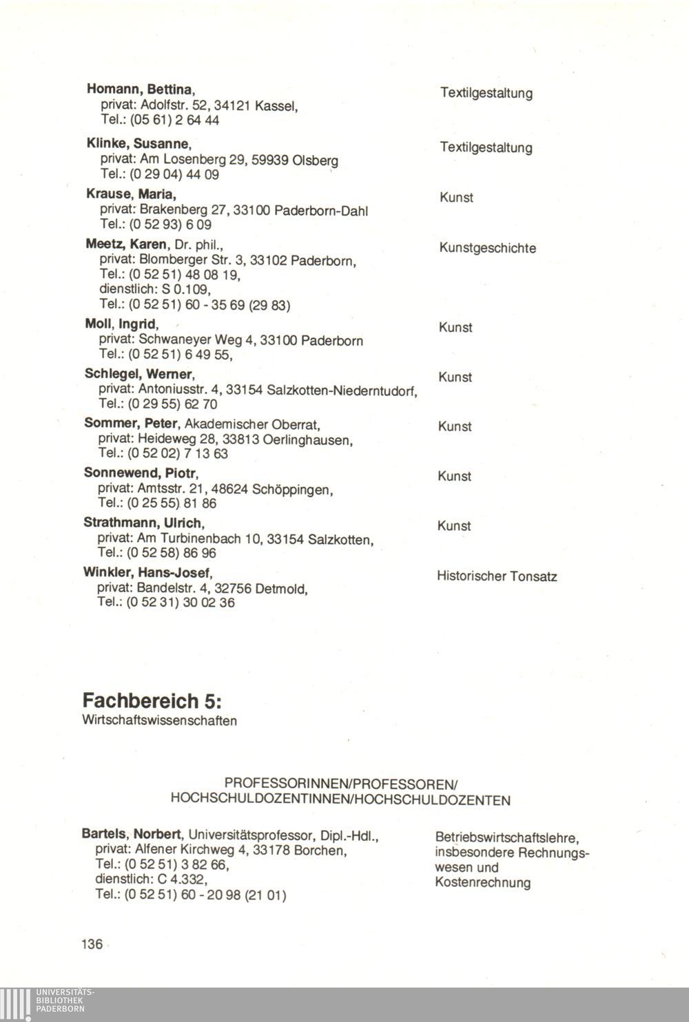 Personal- und Vorlesungsverzeichnis für die Universität Paderborn