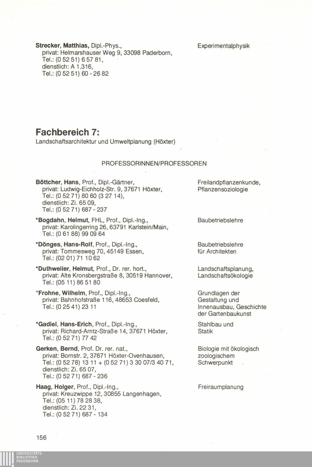 Personal- und Vorlesungsverzeichnis für die Universität Paderborn