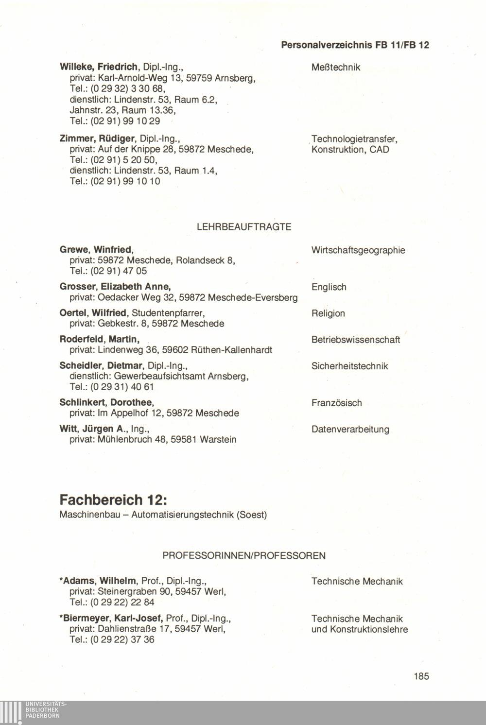 Personal- und Vorlesungsverzeichnis für die Universität Paderborn