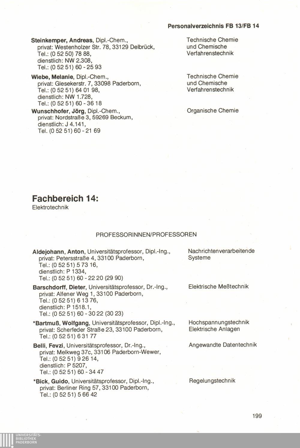 Personal- und Vorlesungsverzeichnis für die Universität Paderborn