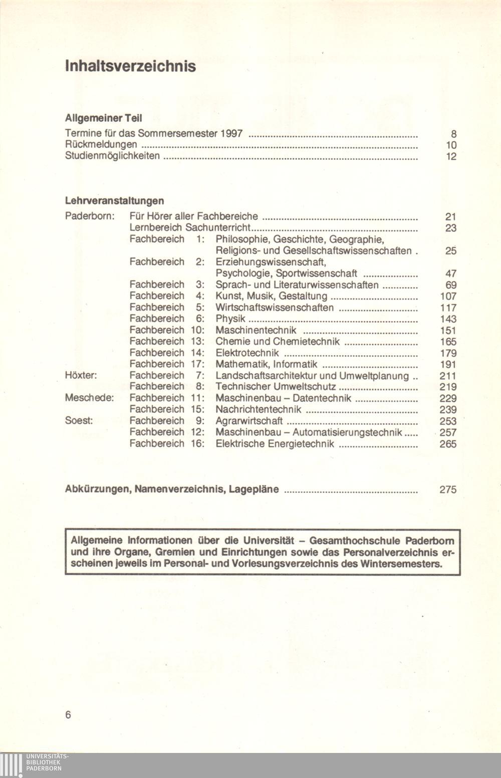 Personal- und Vorlesungsverzeichnis für die Universität Paderborn