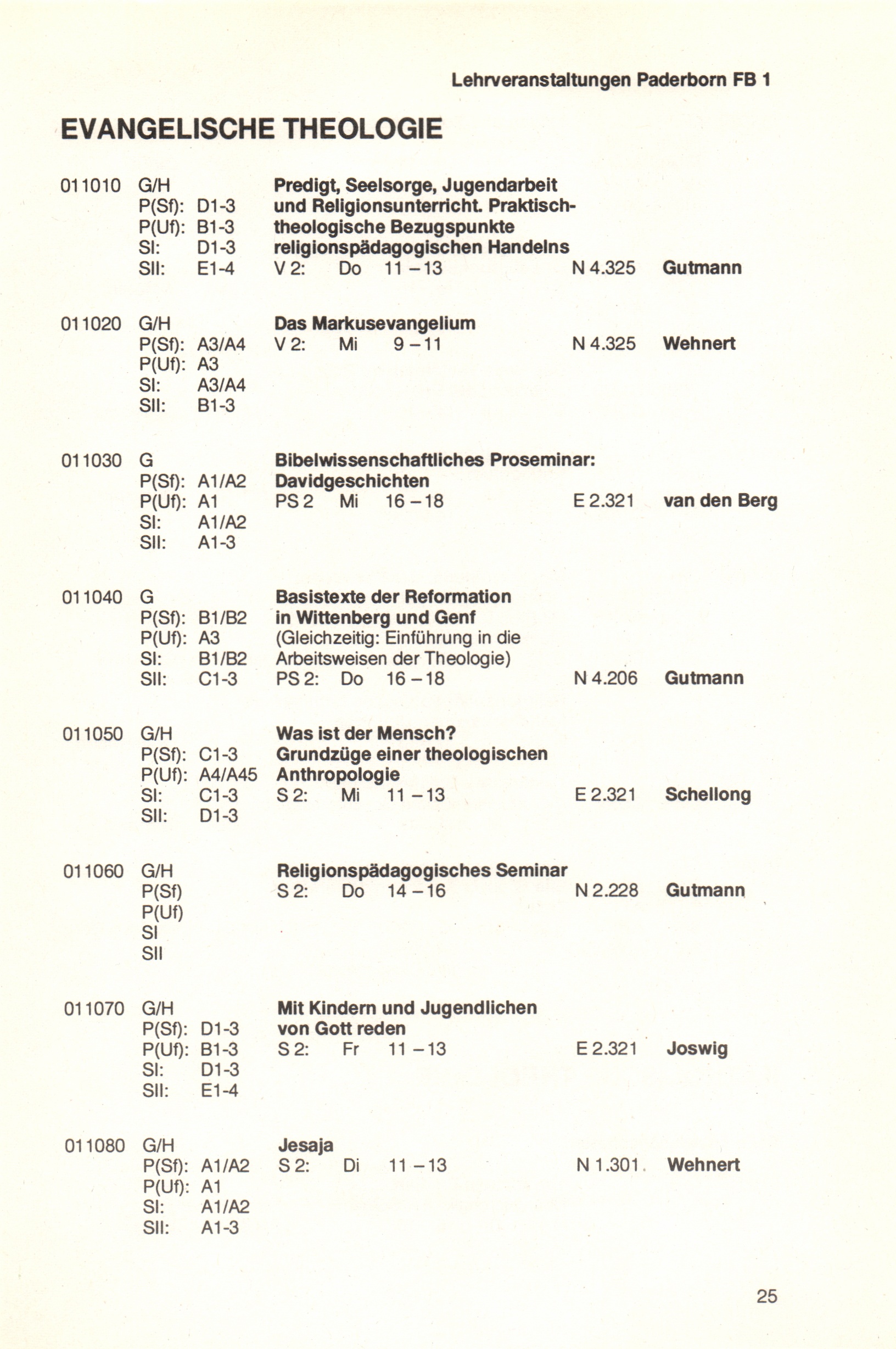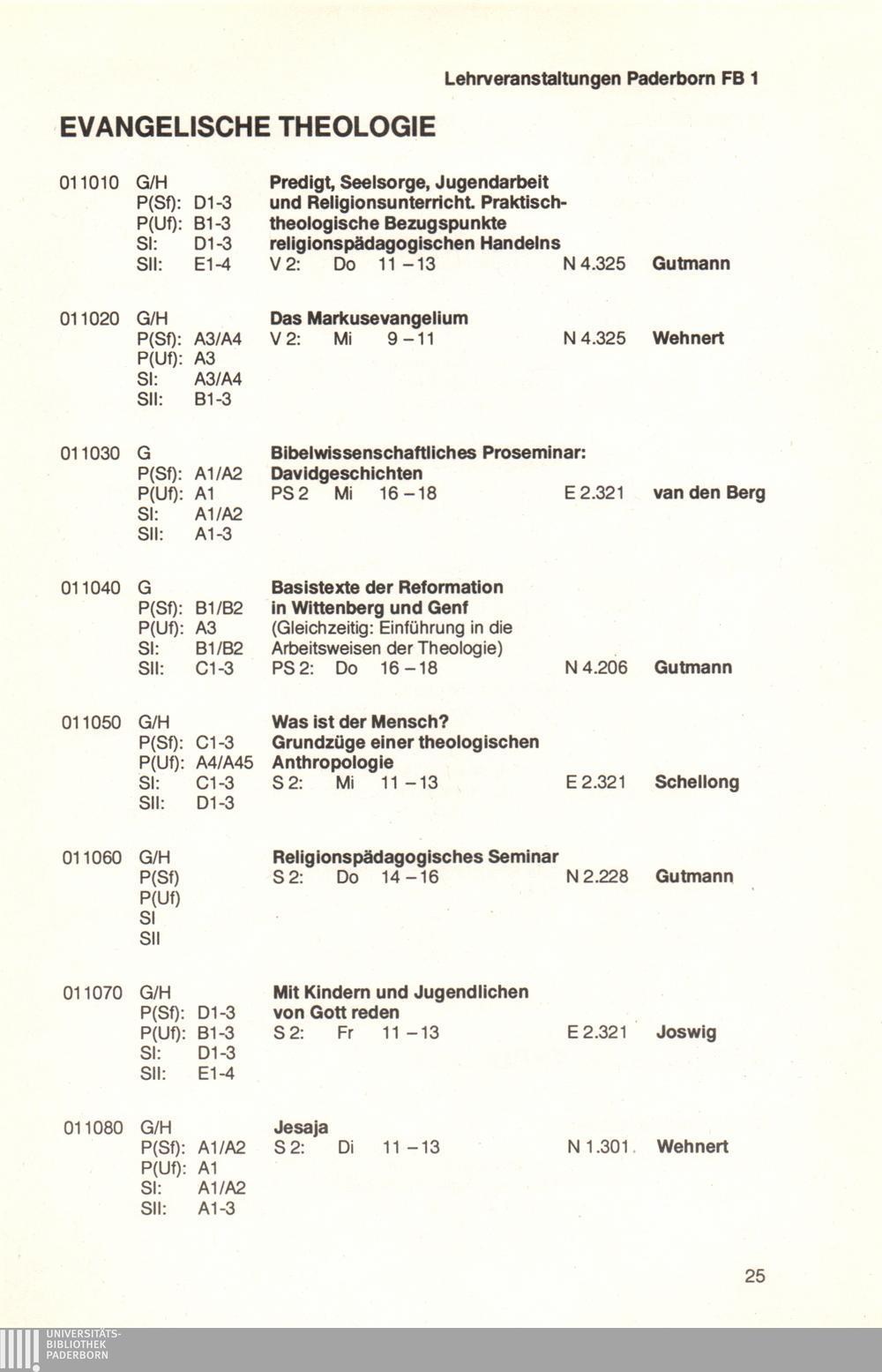 Personal- und Vorlesungsverzeichnis für die Universität Paderborn