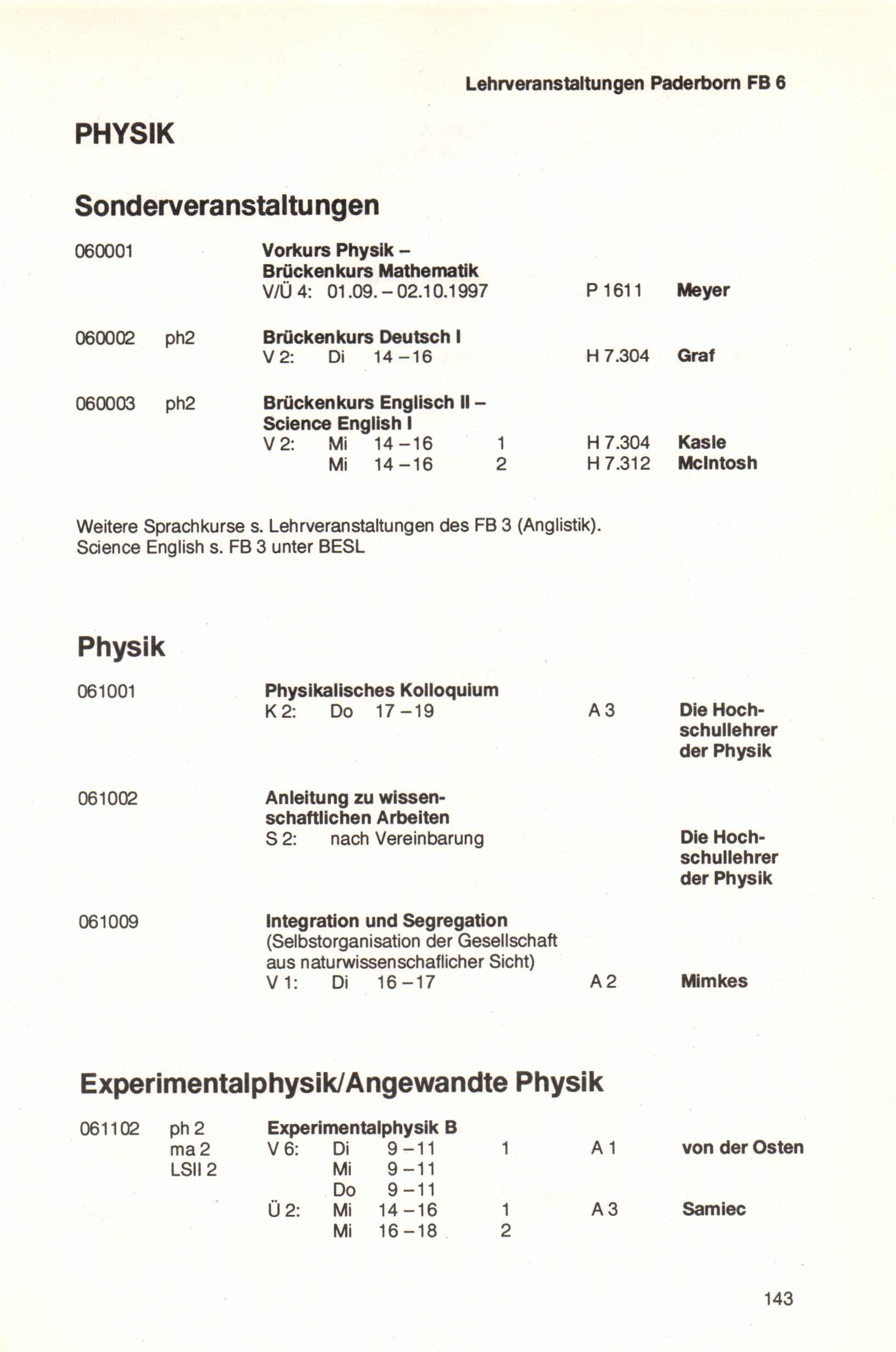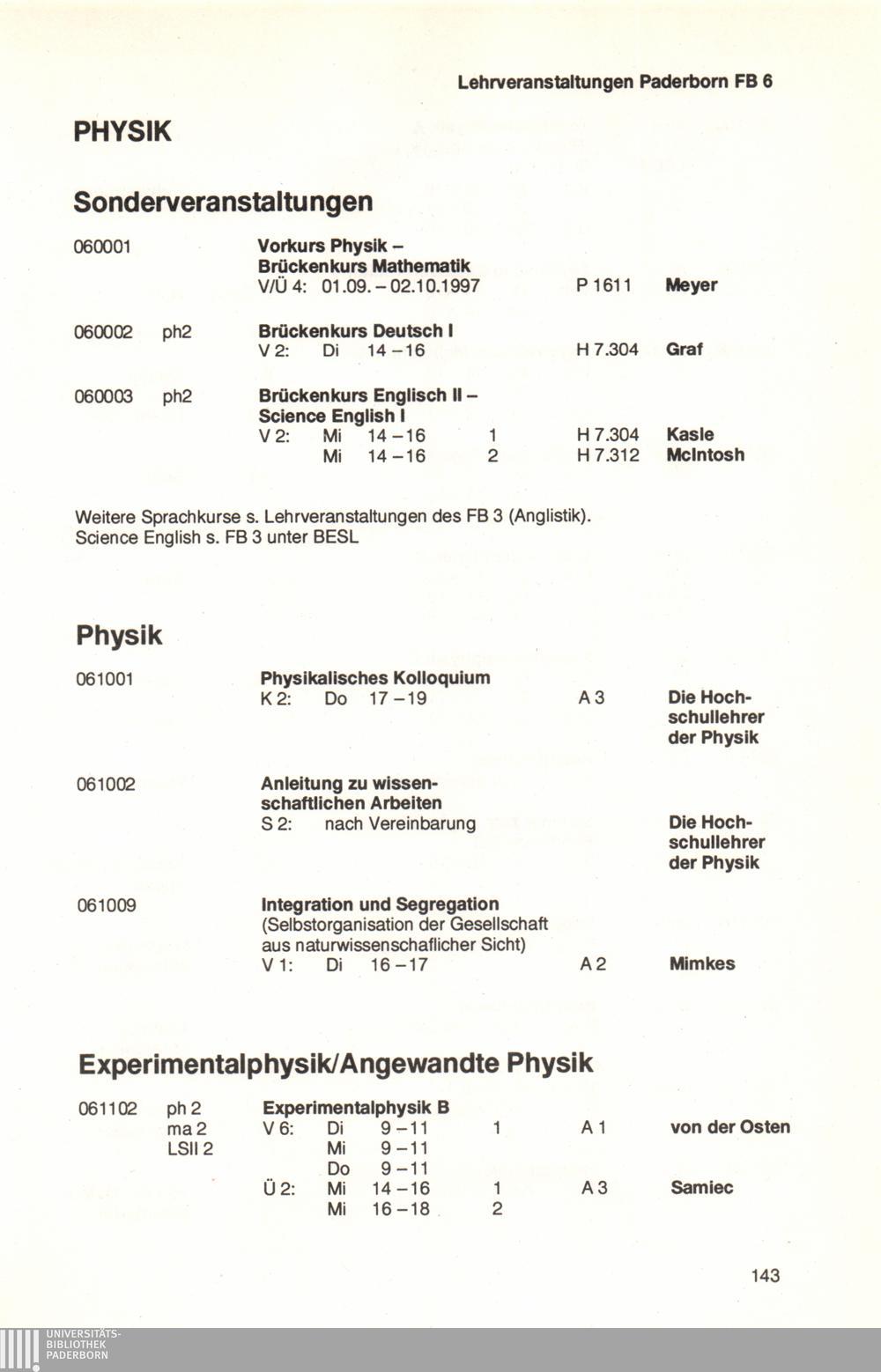 Personal- und Vorlesungsverzeichnis für die Universität Paderborn