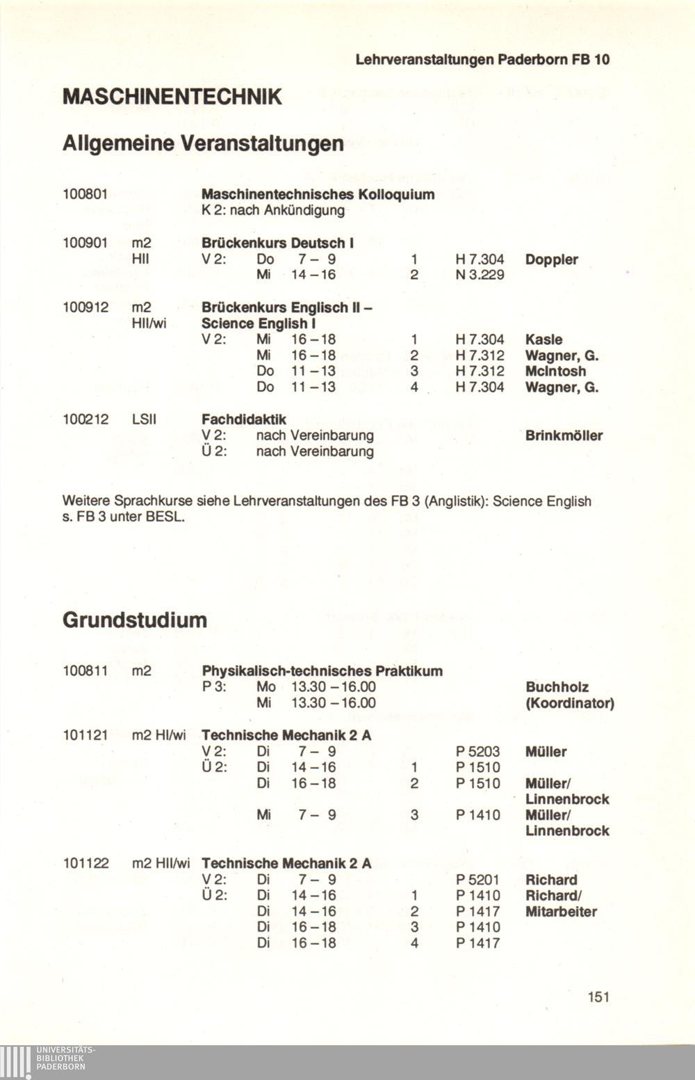 Personal- und Vorlesungsverzeichnis für die Universität Paderborn