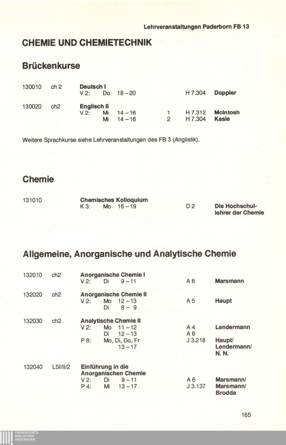 Personal- und Vorlesungsverzeichnis für die Universität Paderborn