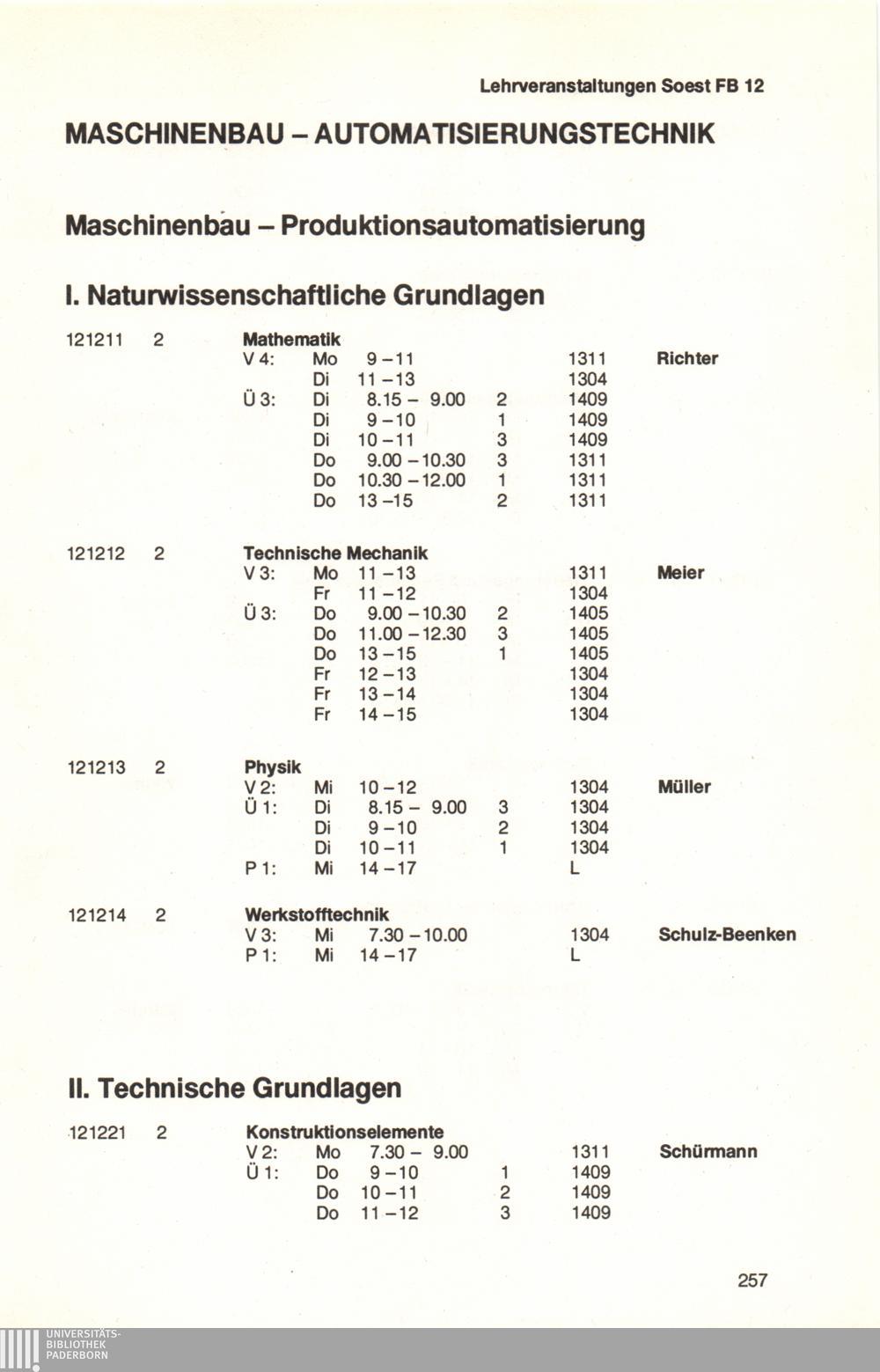 Personal- und Vorlesungsverzeichnis für die Universität Paderborn
