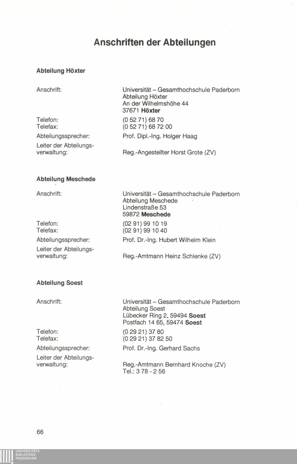 Personal- und Vorlesungsverzeichnis für die Universität Paderborn