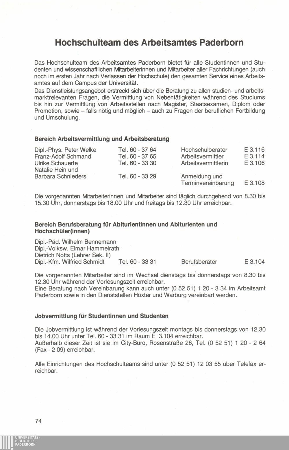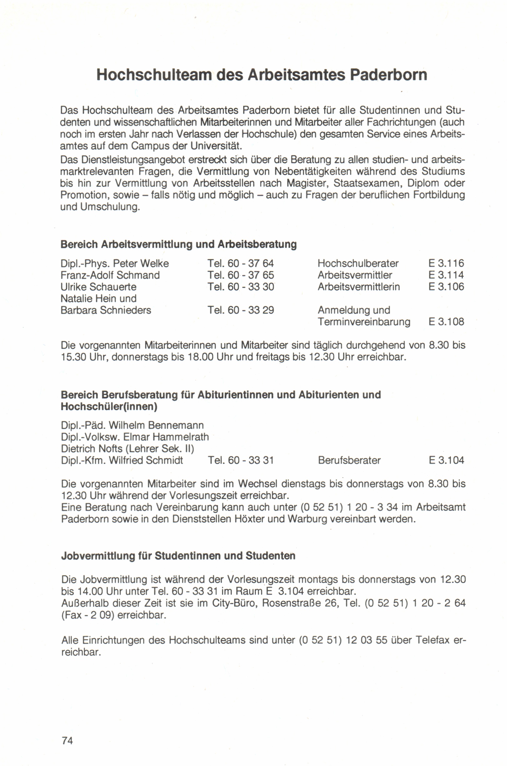 Hochschulteam und Berufsberatung der Arbeitsämter