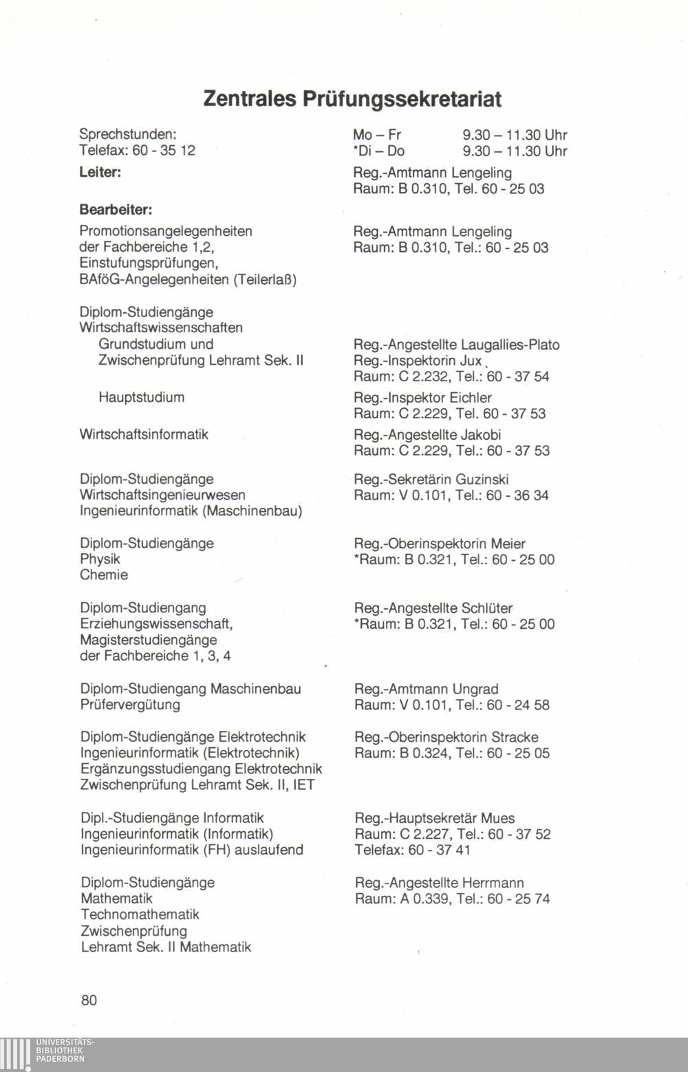 Personal- und Vorlesungsverzeichnis für die Universität Paderborn