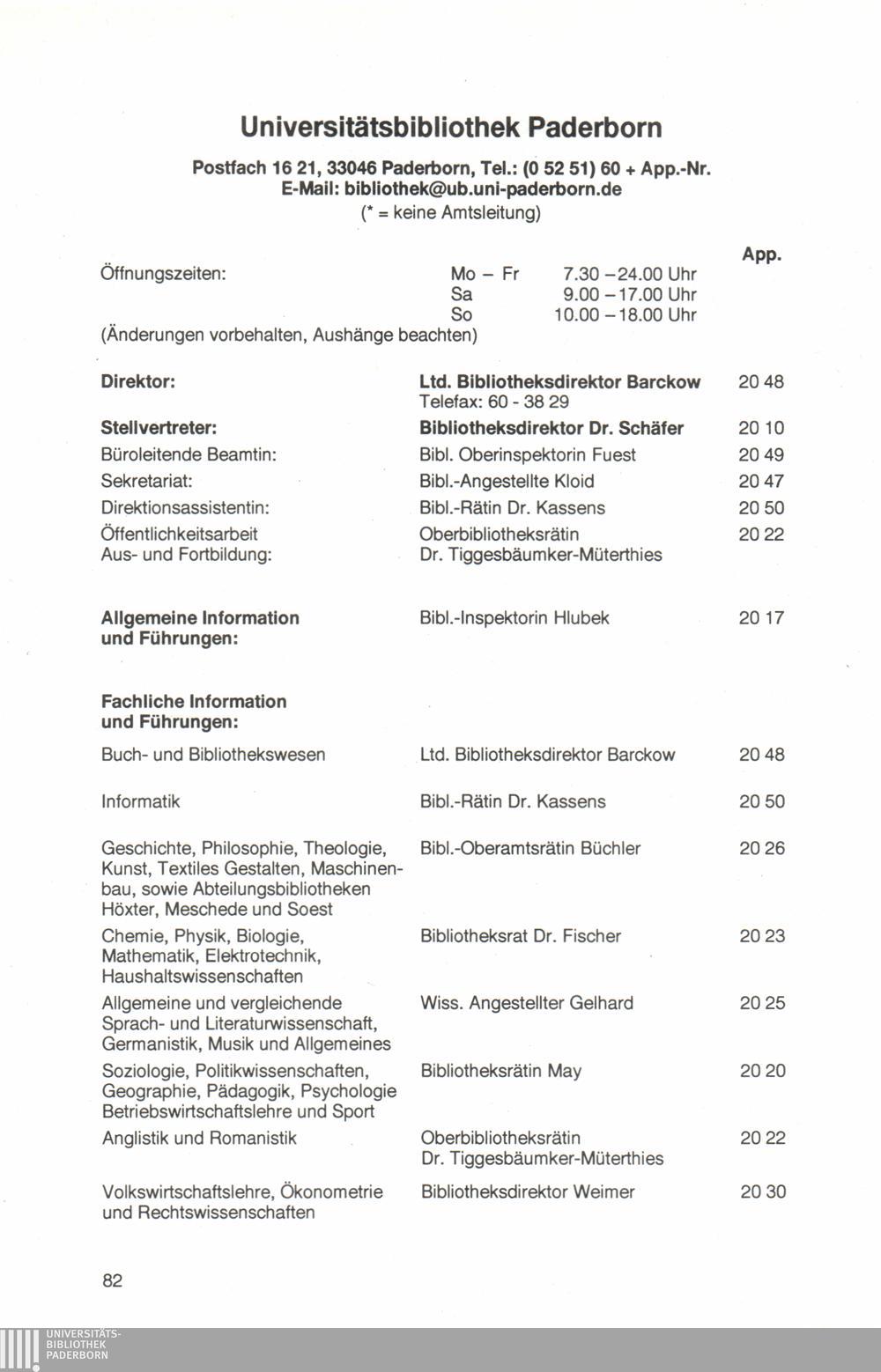 Personal- und Vorlesungsverzeichnis für die Universität Paderborn
