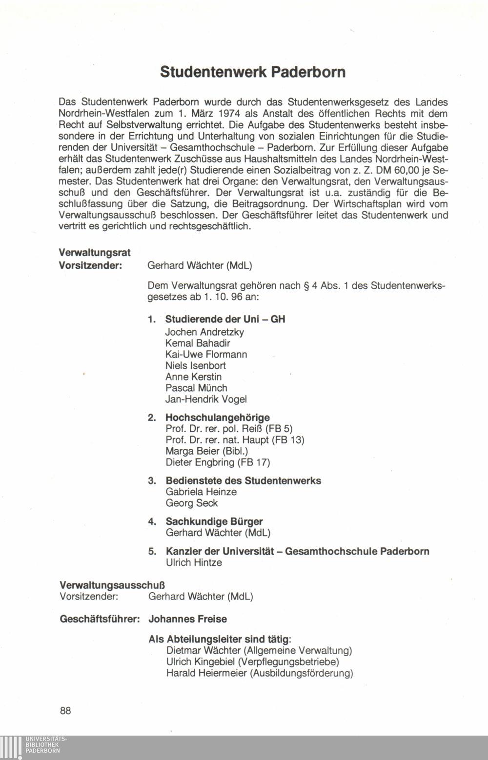 Personal- und Vorlesungsverzeichnis für die Universität Paderborn
