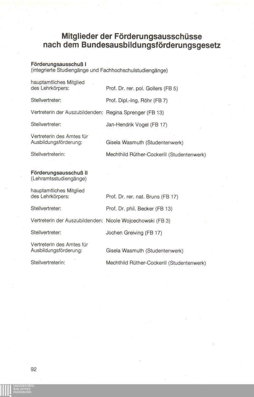 Personal- und Vorlesungsverzeichnis für die Universität Paderborn