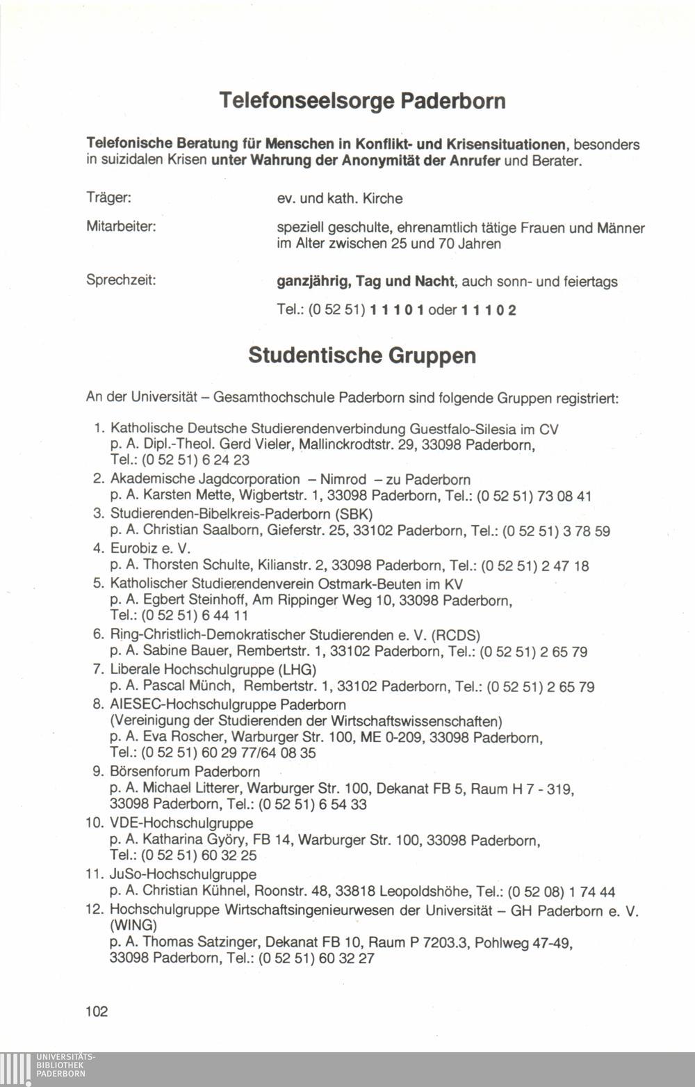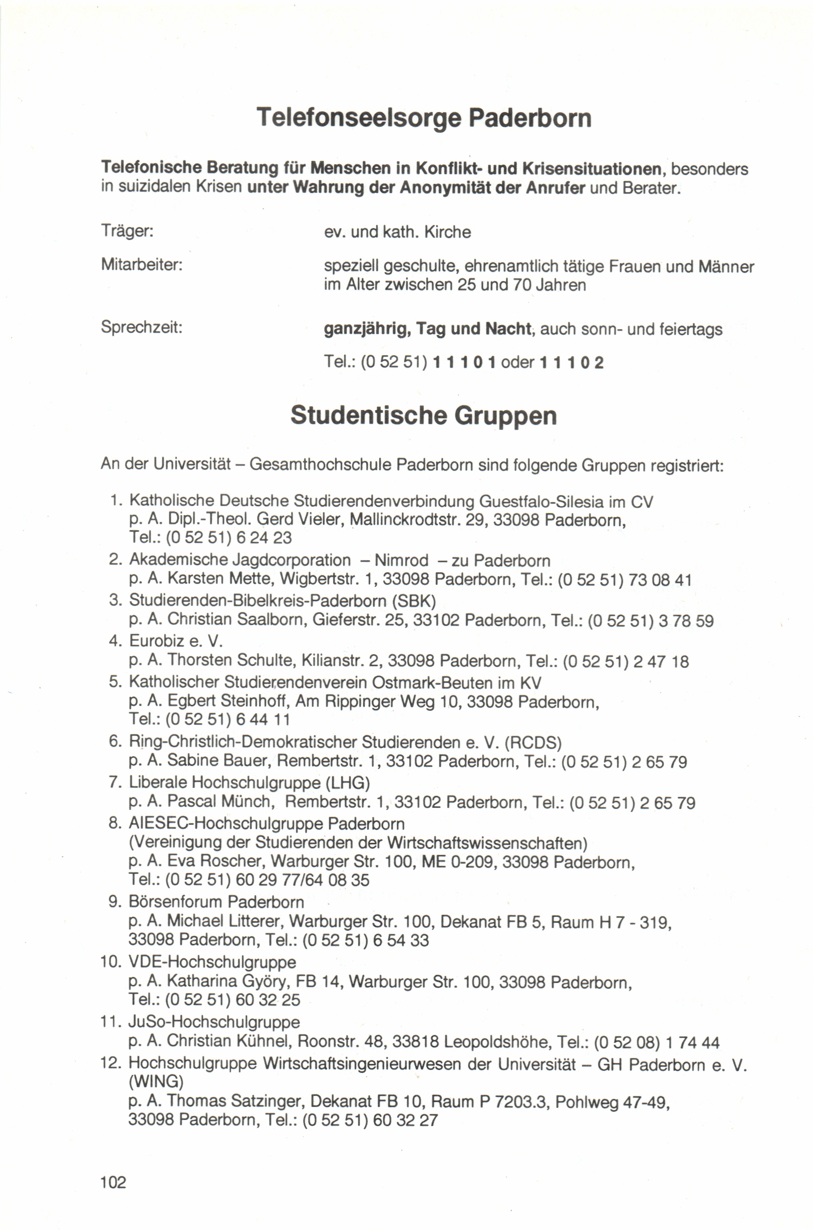 Telefonseelsorge/Studentische Gruppen