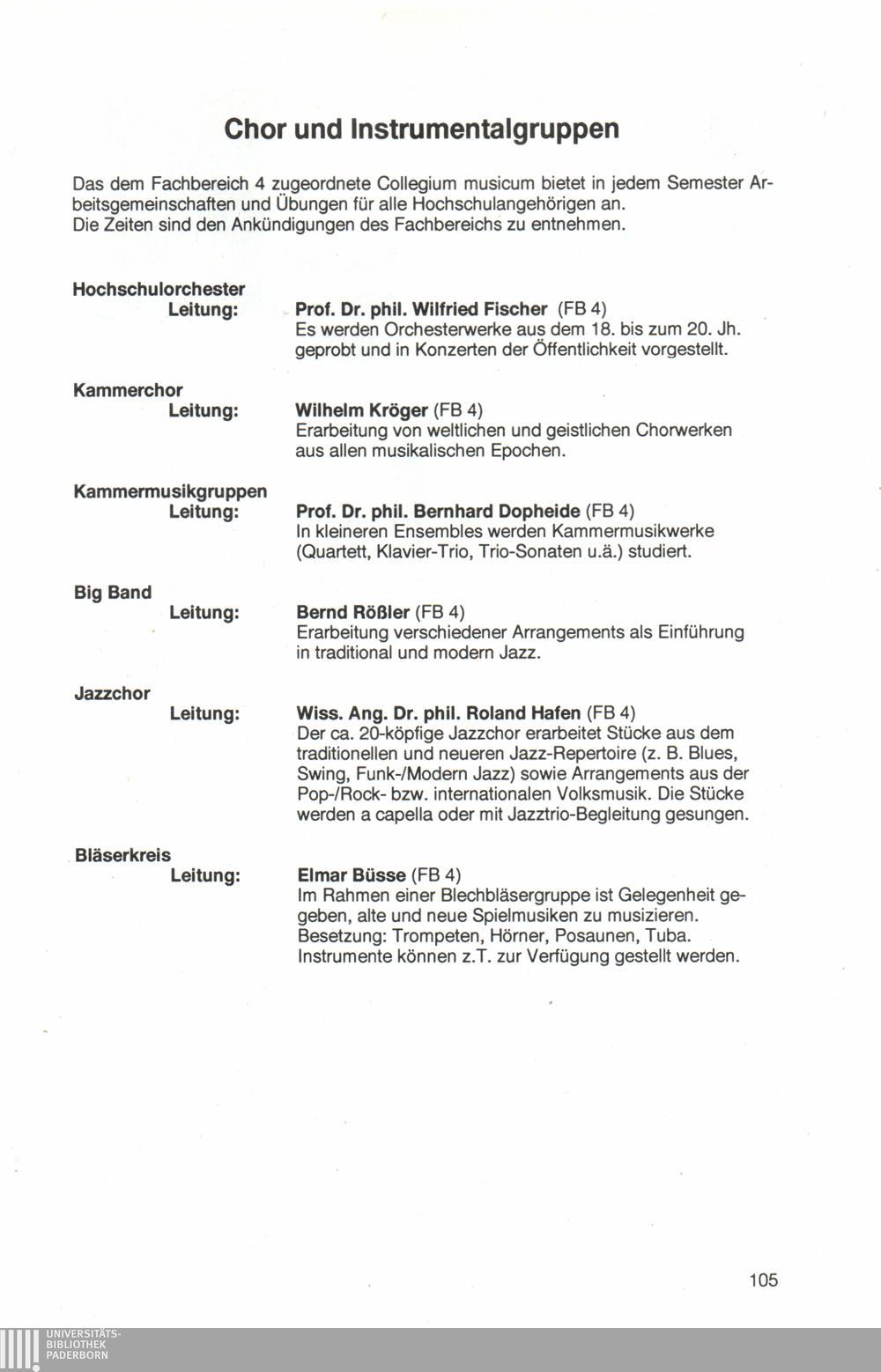 Personal- und Vorlesungsverzeichnis für die Universität Paderborn