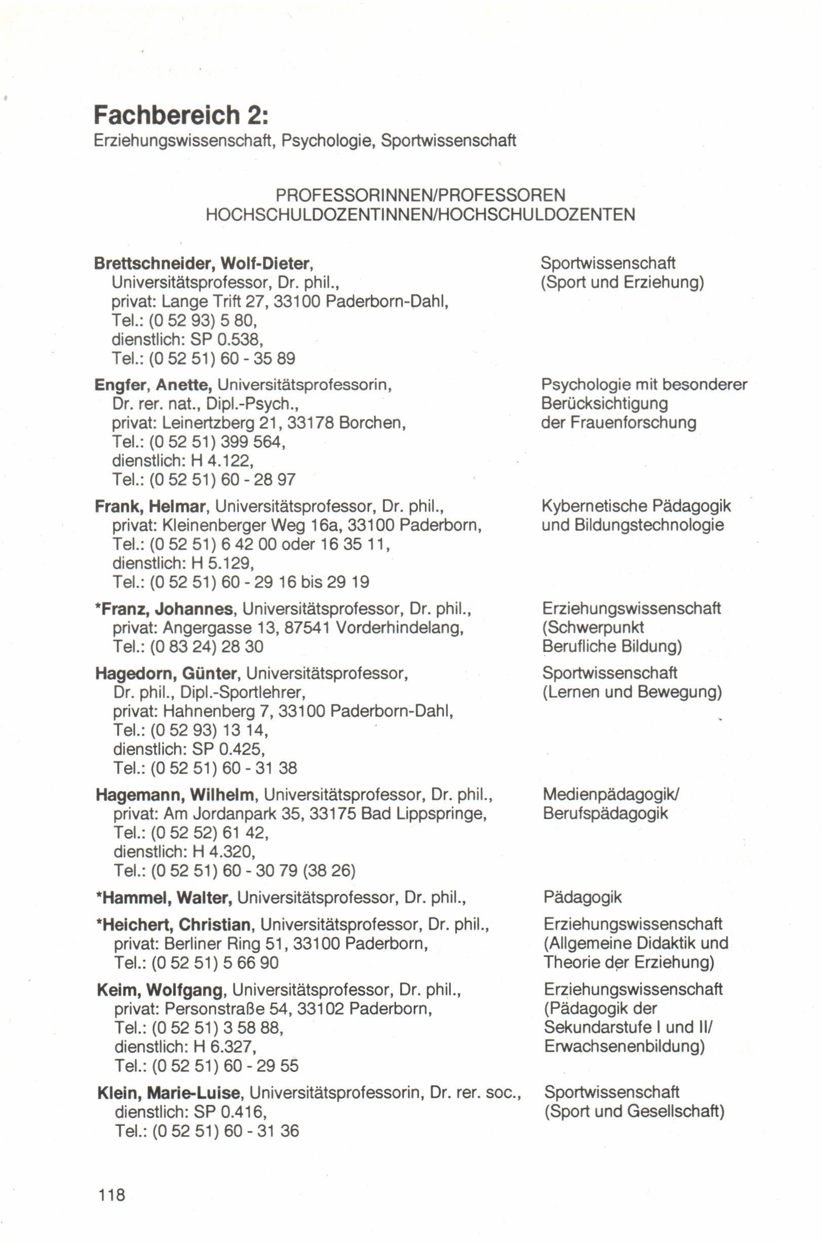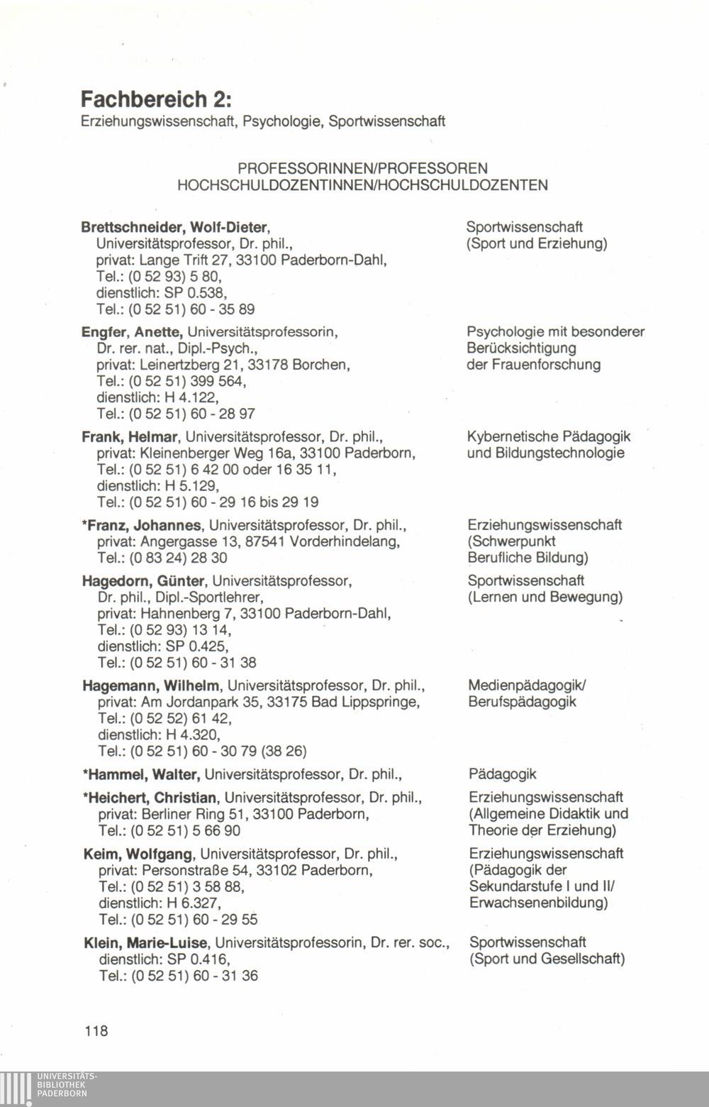 Personal- und Vorlesungsverzeichnis für die Universität Paderborn
