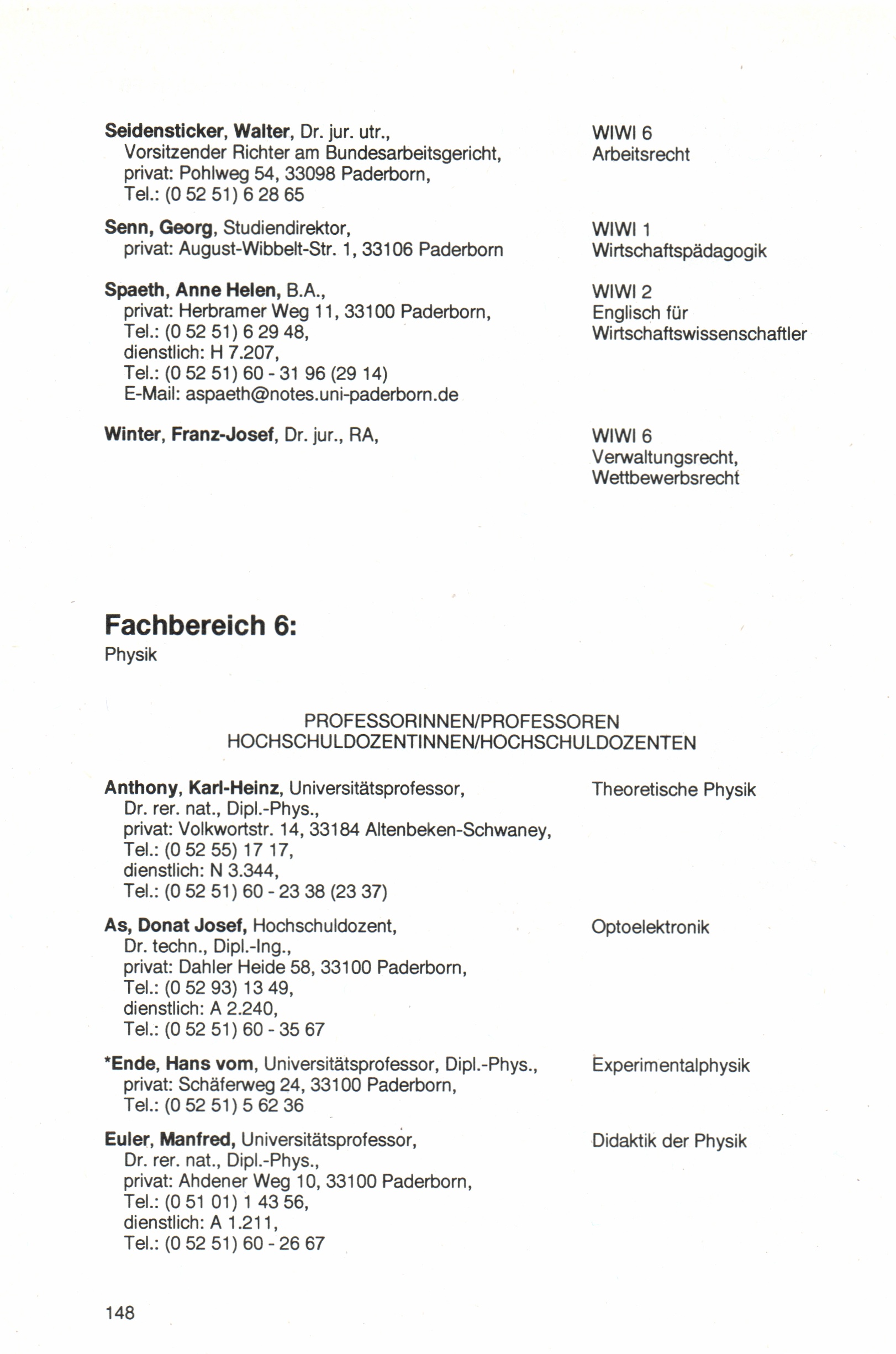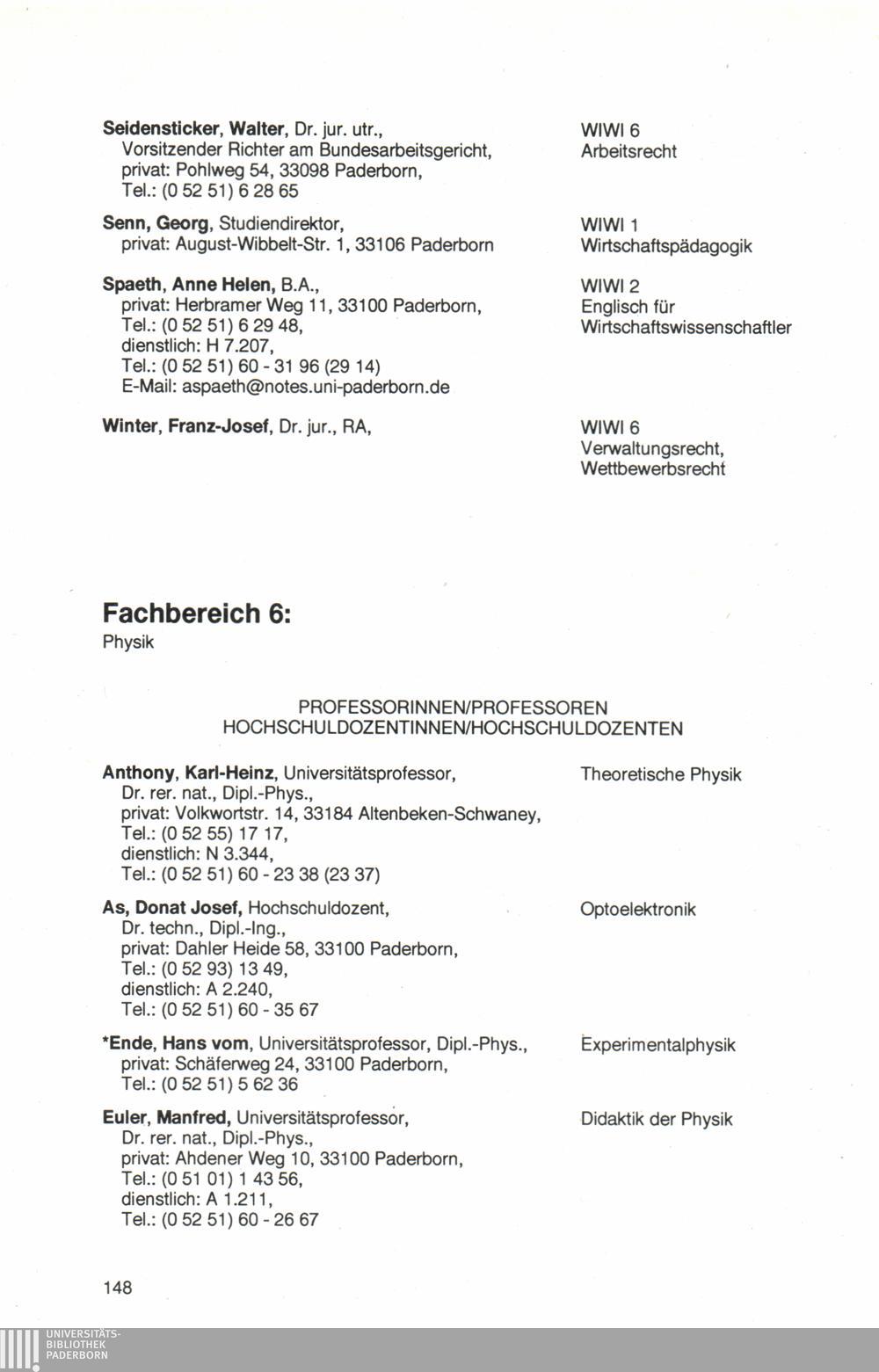 Personal- und Vorlesungsverzeichnis für die Universität Paderborn