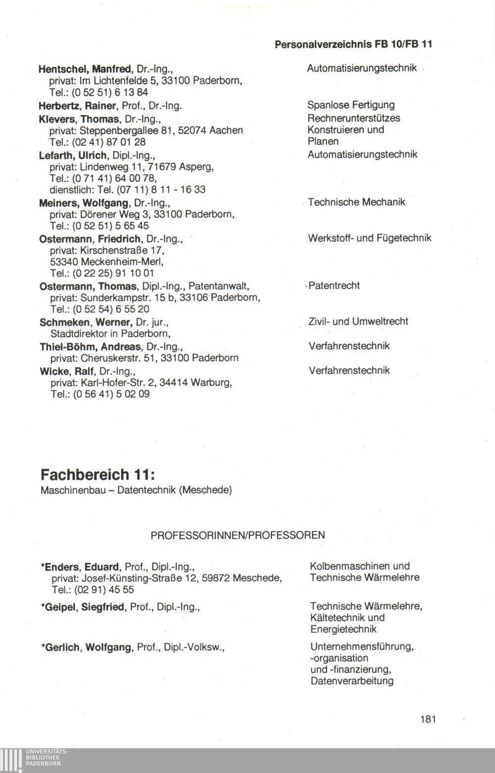 Personal- und Vorlesungsverzeichnis für die Universität Paderborn