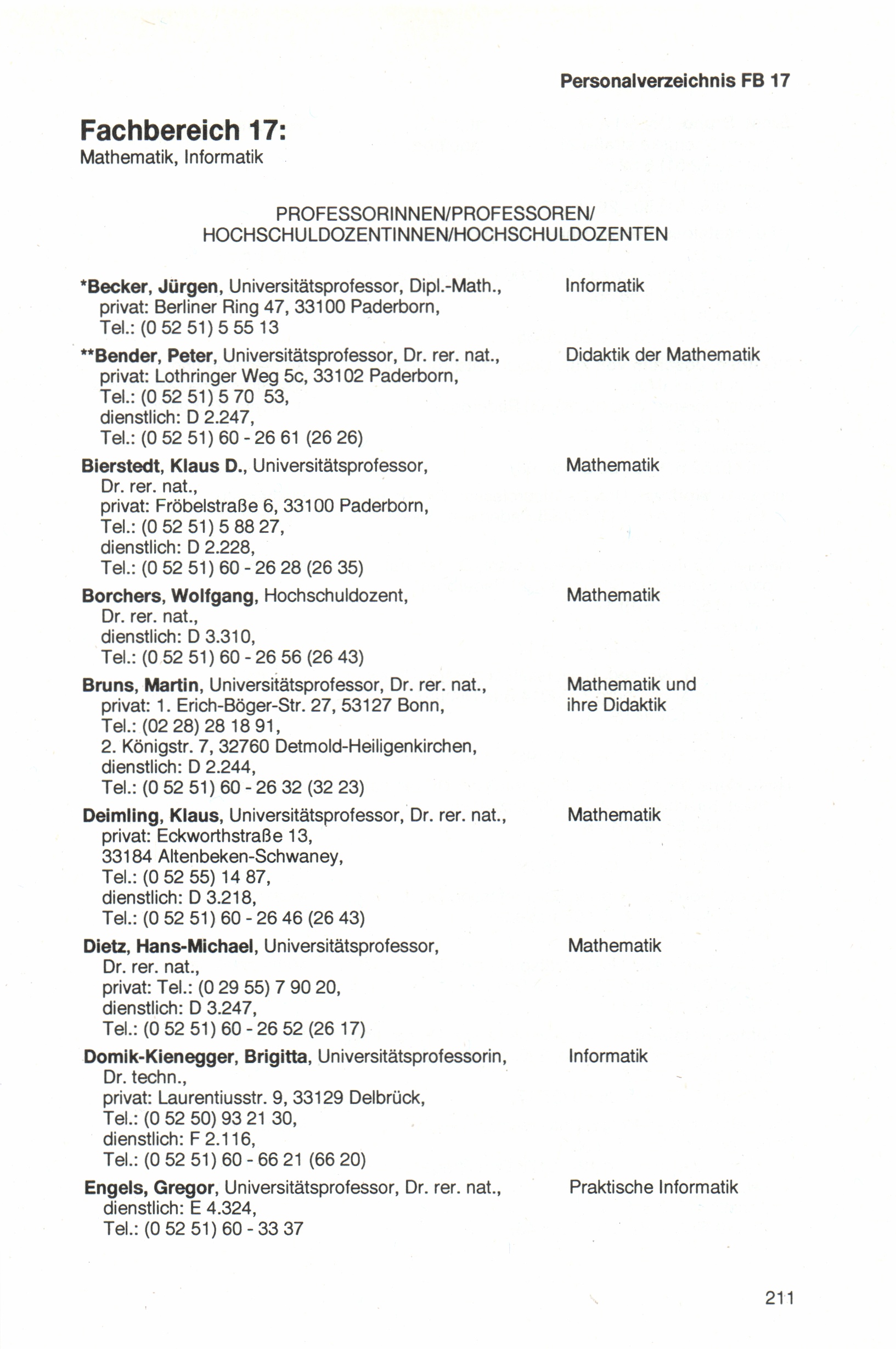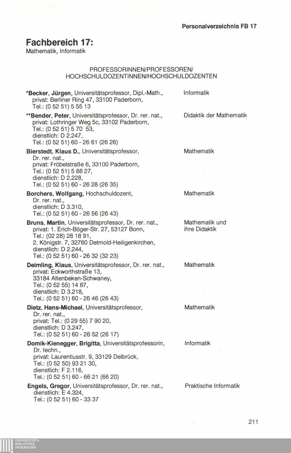 Personal- und Vorlesungsverzeichnis für die Universität Paderborn