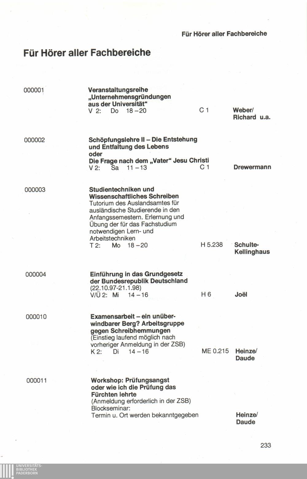 Personal- und Vorlesungsverzeichnis für die Universität Paderborn