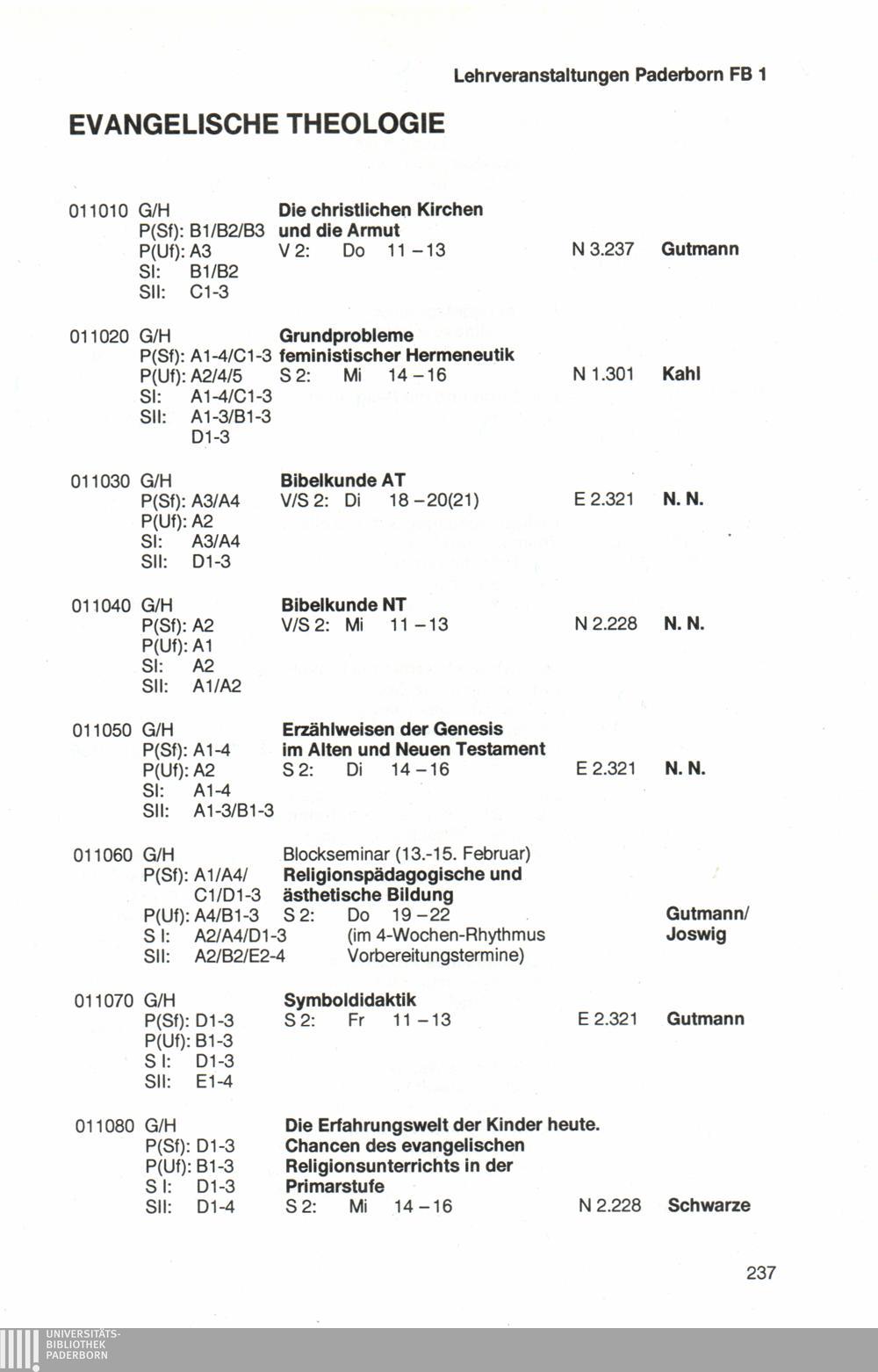 Personal- und Vorlesungsverzeichnis für die Universität Paderborn