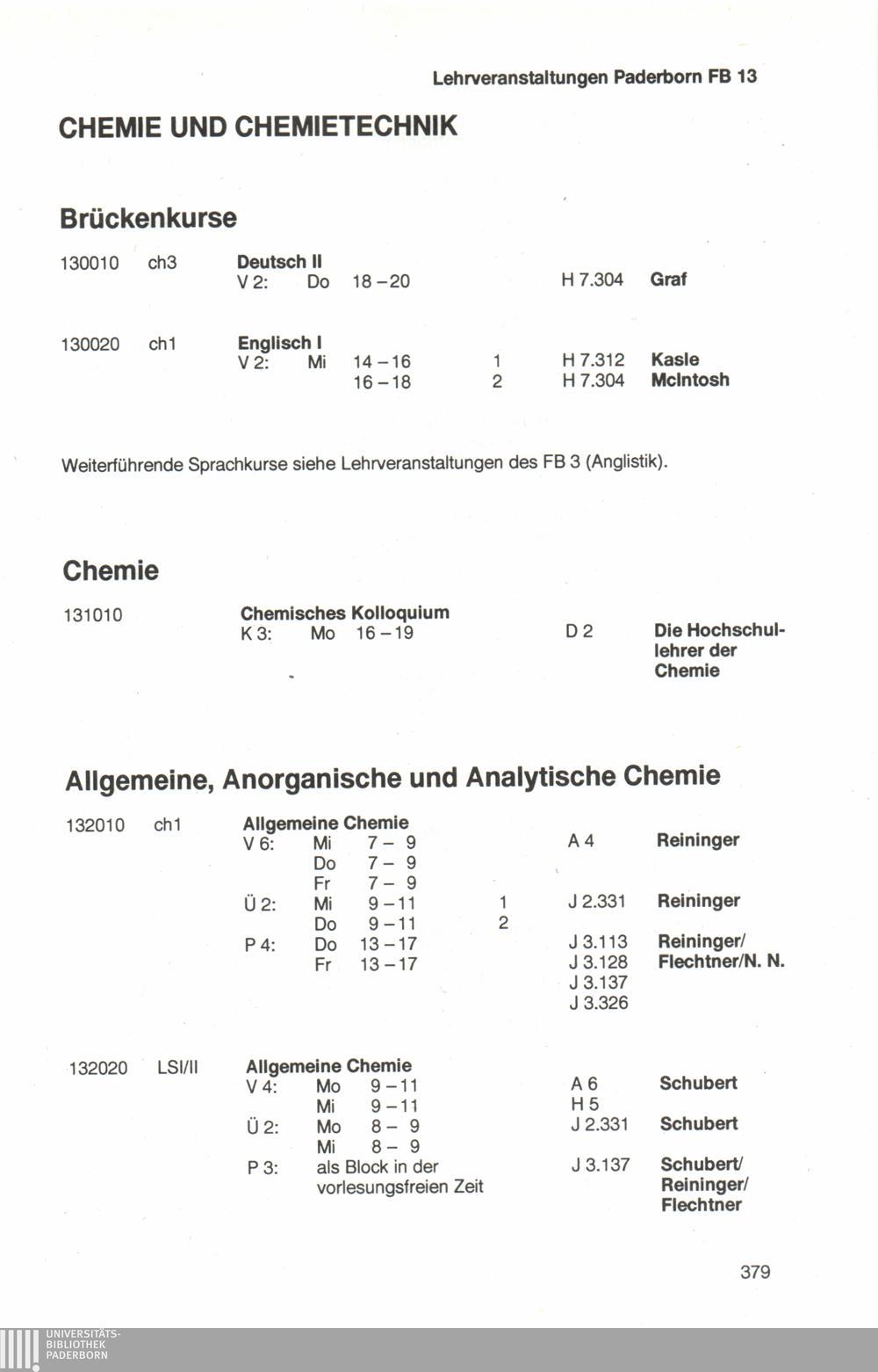 Personal- und Vorlesungsverzeichnis für die Universität Paderborn