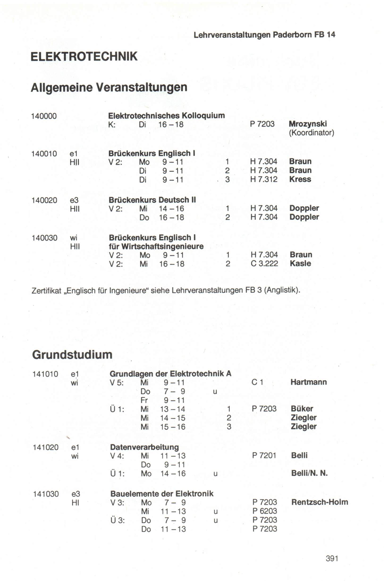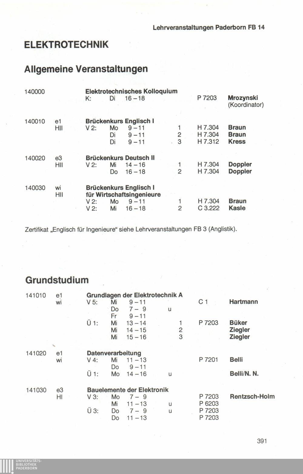 Personal- und Vorlesungsverzeichnis für die Universität Paderborn
