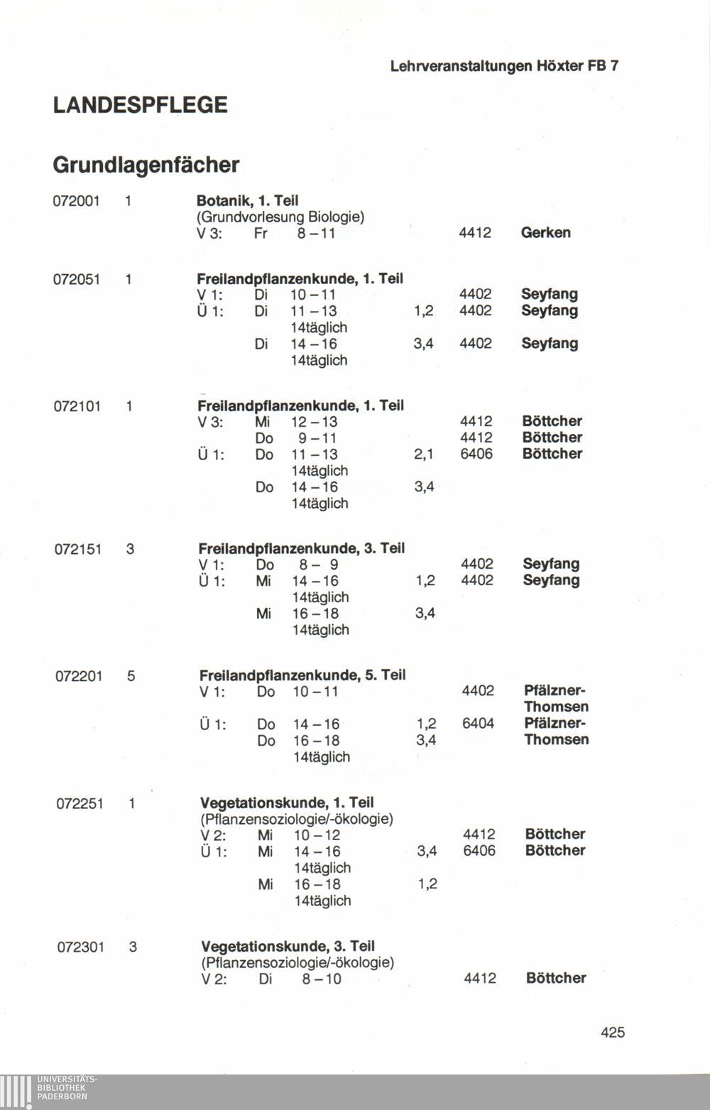 Personal- und Vorlesungsverzeichnis für die Universität Paderborn