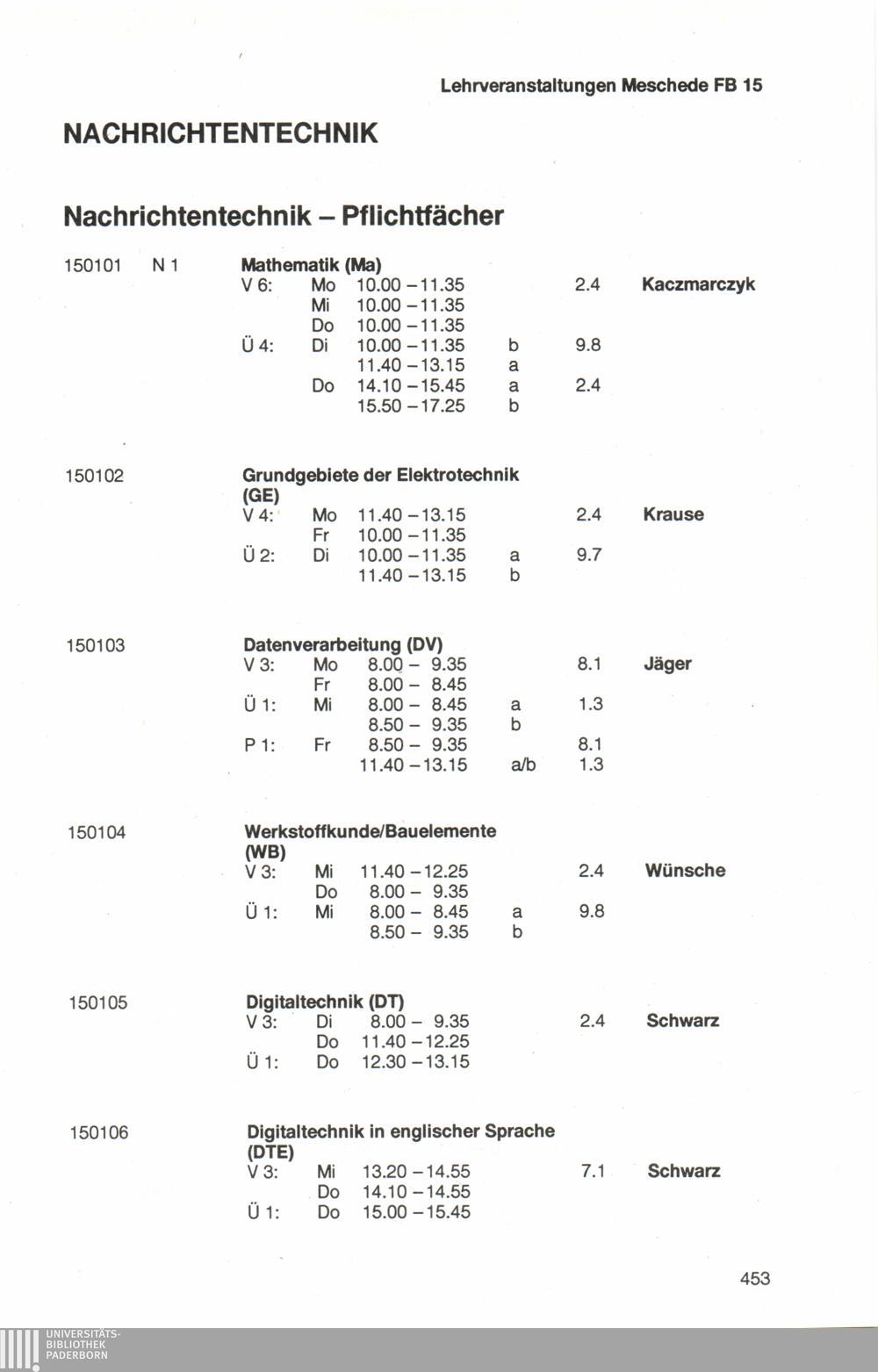 Personal- und Vorlesungsverzeichnis für die Universität Paderborn