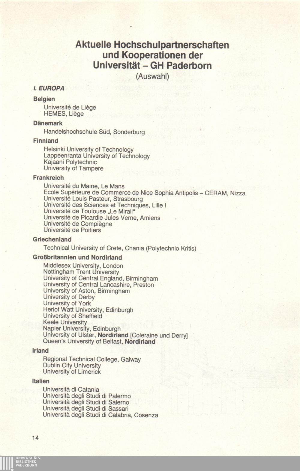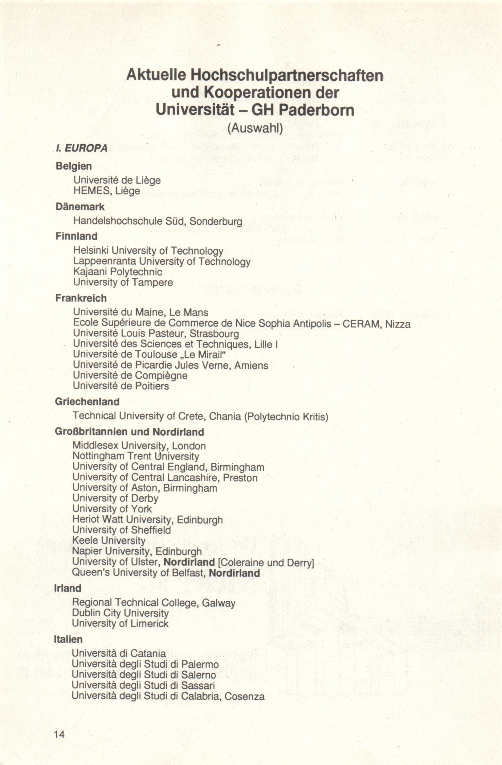 Aktuelle Hochschulpartnerschaften und Kooperationen an der Universität - GH Pade[...]